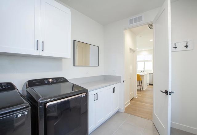 Turnkey furnished home in the recently built, short term rental approved, community of PGA West Signature. Professionally curated by award winning interior designer, Patricia Lockwood, of Design Vision Studio, this 1960 square foot home is not to be missed. Situated on a south facing lot with Santa Rosa mountain views and just a few steps to the Signature Clubhouse, resort style pool, and fitness center. This open concept floor plan features a chef's kitchen with stainless steel appliances, quartz countertops and white shaker cabinetry. The primary bedroom is located downstairs with a large ensuite bath with double vanity and quartz countertops. Two separate living/entertaining areas highlight the home; one on the main floor, and upstairs you will find the Frank Sinatra inspired bonus room, with wet bar. Two additional guest rooms and a full bath round out the upper level. Relax and entertain in the secluded front yard patio for al fresco dining and evenings spent in front of your private firpit overlooking Coral Mountain. PGA West boasts 6 golf courses (3 public, 3 private) as well as a state of the art Fitness and Sports Club (separate membership). This meticulous home is currently being used as a short term rental and is being sold turnkey furnished. HOA fees include 24 hour guard gated security, internet, cable and front yard maintenance. Leased solar is $39/month and must be assumed by new buyer. Buyer to pay City transfer fee.