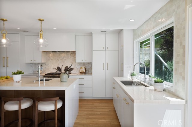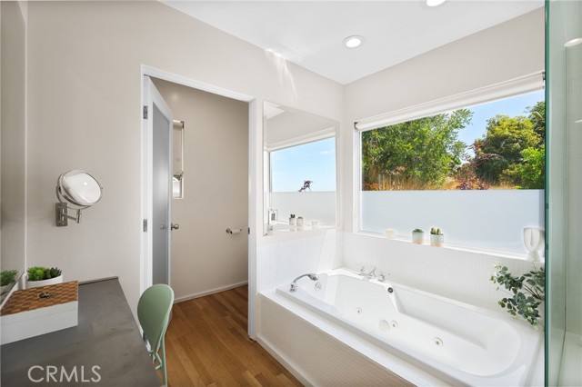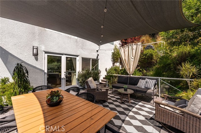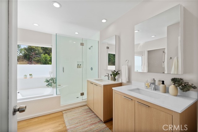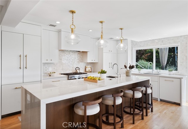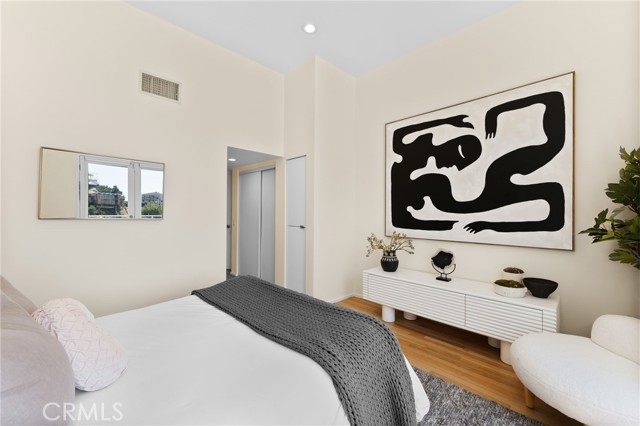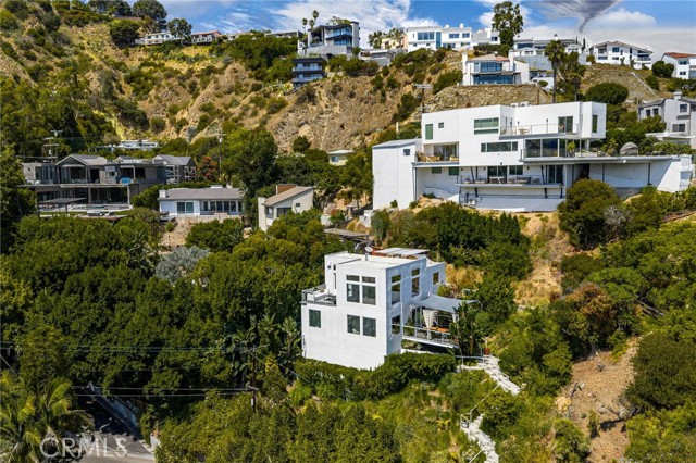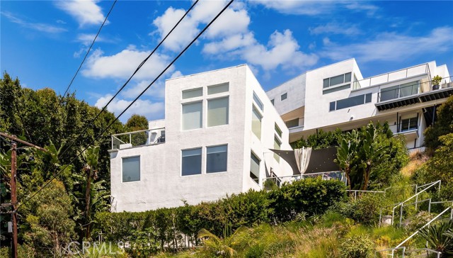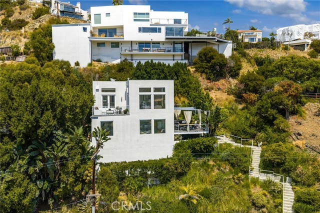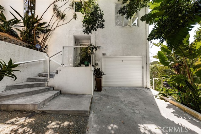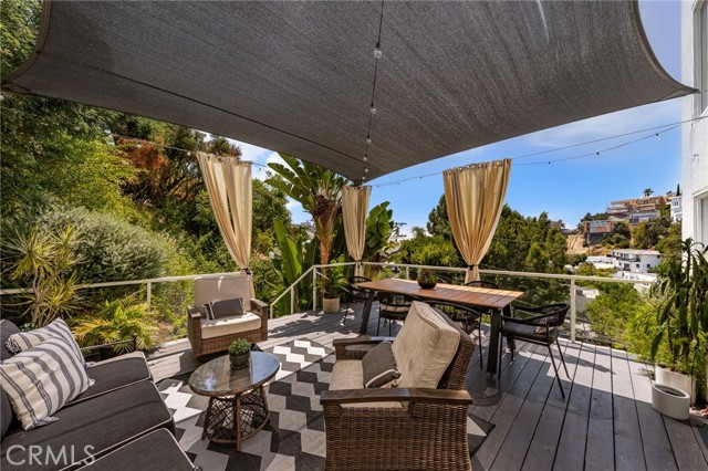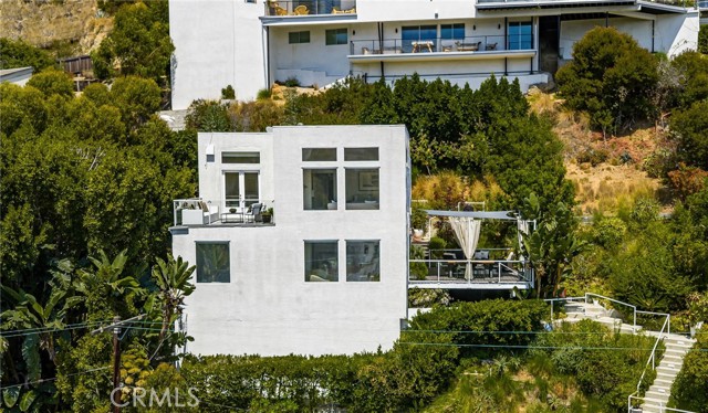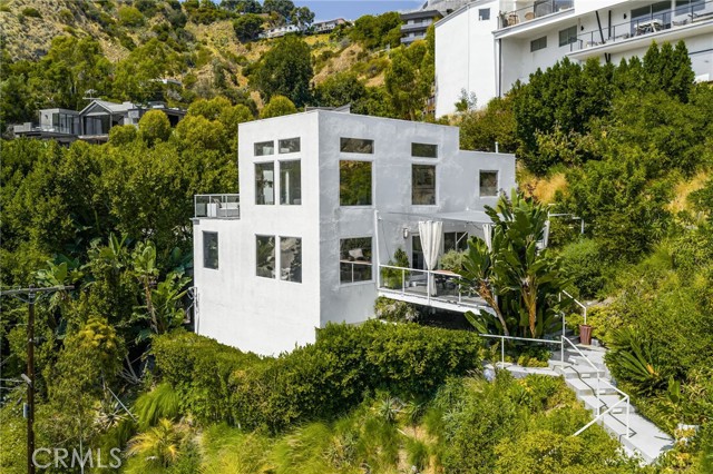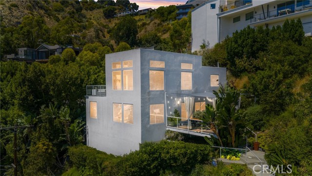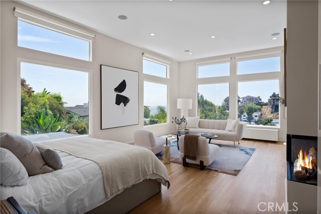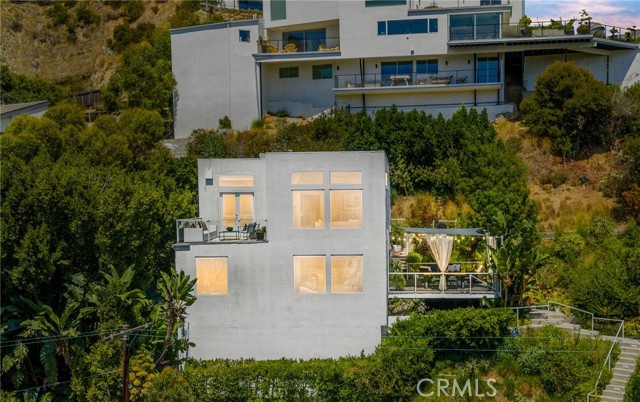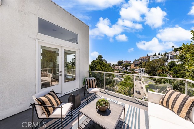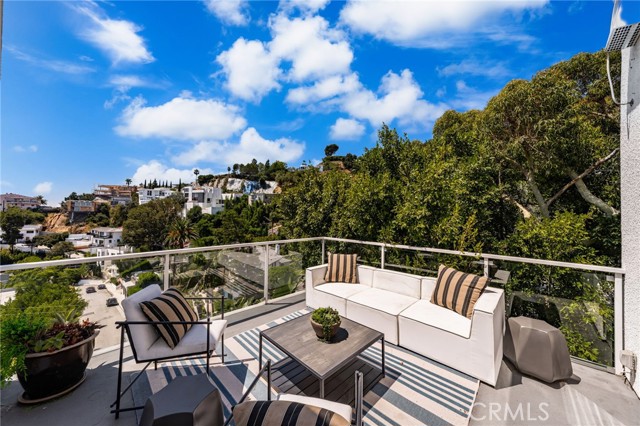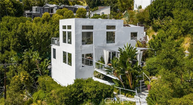Tucked away in a peaceful, private setting, this contemporary retreat perfectly blends modern sophistication with the beauty of its Hollywood Hills surroundings. Designed with clean architectural lines and expansive glass walls, the home captures sweeping views of the city, canyons, and treetops. The open-concept living, dining, and kitchen areas connect seamlessly to a covered outdoor deck—an ideal space for both lively entertaining and quiet relaxation. The main level also includes a versatile bedroom with its own en suite bath, perfect for guests, family, or a private retreat. Upstairs, the primary suite is a true sanctuary with soaring ceilings, a fireplace, spa-like bath with soaking tub and separate shower, and a private terrace. Two additional bedrooms, each with en suite bathrooms, provide comfort and privacy. Additional highlights include a dedicated office, stylish powder room, and direct garage-to-front-door access. Thoughtful upgrades throughout the kitchen and bathrooms enhance the home’s modern appeal. An OVERSIZED garage space with electricity that can easily be converted to a gym, music studio, Mud ROOM, or any extra space of your choice. Not to mention, Two driveway spots, and generous street parking, convenience comes easy. Just minutes from the Sunset Strip, Chateau Marmont, and other Hollywood icons, this residence offers both privacy and proximity to the best of Los Angeles living.