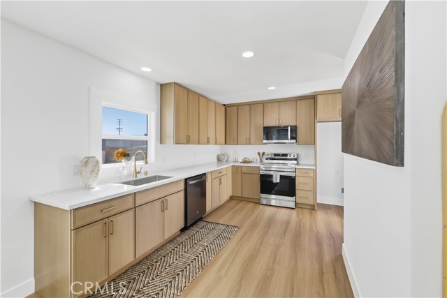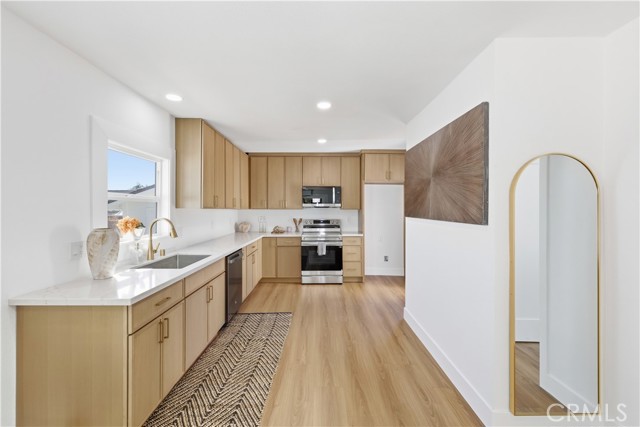 Welcome to this inviting 2-bedroom, 1-bath single-family home offering approximately 816 sq ft of thoughtfully designed living space, ideally situated on a generous 3,962 sq ft lot in the heart of Wilmington. Step inside to discover a bright living space with new finishes, creating the perfect blend of comfort and style. featuring a cozy living area, a fully remodeled kitchen, and two comfortable bedrooms with ample natural light and recessed lighting. The full bathroom is clean and efficient, perfect for everyday living with a beautiful modern feel. The expansive lot offers endless potential—whether you’re dreaming of a lush garden, outdoor entertaining area, or future home expansion (buyer to verify ADU potential). A detached garage provides additional storage or workspace, and there's plenty of off-street parking available. Located in a quiet residential neighborhood with convenient access to local schools, parks, shops, and major freeways, this home is perfect for first-time buyers, investors, or anyone seeking an affordable single-family property in a growing community. Don't miss this great opportunity to own a charming home with room to grow in Wilmington!