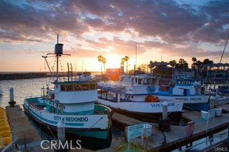 This spacious condominium is located just 1 block to the beach where you can surf with the dolphins, enjoy the pristine sandy beach, ride along the bike path, and view some spectaculars sunsets! Features include hardwood floors throughout, a cozy fireplace in the living room, inside laundry with newer washer and dryer, and a private patio. On the main floor you have one bedroom overlooking the lovely landscaped courtyard; and, upstairs there is a loft primary suite with a large walk-in closet, and office/den area with ceiling fan. Also included are 2 parking spaces (tandem), and a storage cabinet in the gated garage. A short distance from the Riviera Village, you will find shops, restaurants for fine dining, and sidewalk cafes! Enjoy the gorgeous Pacific Ocean and bike path to the Renowned Redondo Beach Pier, Harbor and beyond!
