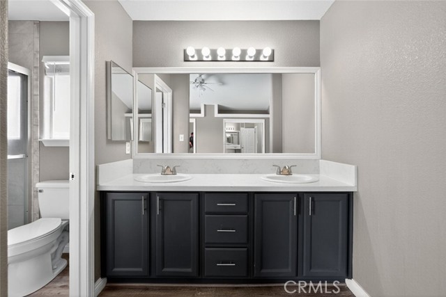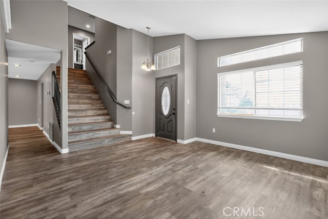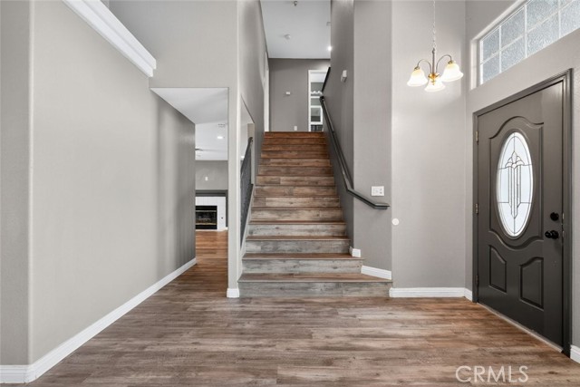 Welcome to this charming two-story single-family home offering 1,748 sq ft of comfortable living space on a generous 7,405 sq ft lot. Featuring an attached 2-car garage, this beautifully maintained residence combines modern upgrades with timeless appeal. Upon entry, you're greeted by an inviting living room highlighted by a cozy fireplace, wood-style flooring, recessed lighting, ceiling fans, and high ceilings that create an airy, open atmosphere. The open floor plan seamlessly connects the living area to the dining and kitchen spaces, perfect for both entertaining and everyday living. The kitchen boasts stainless steel appliances, recessed lighting, and plenty of cabinetry for storage. A stylish staircase leads to the second floor, where you'll find spacious bedrooms with mirrored closet doors. The main bedroom offers a relaxing retreat complete with a dual-sink vanity and ample closet space. With its combination of space, comfort, and modern design, this home is ready to welcome its next owners.