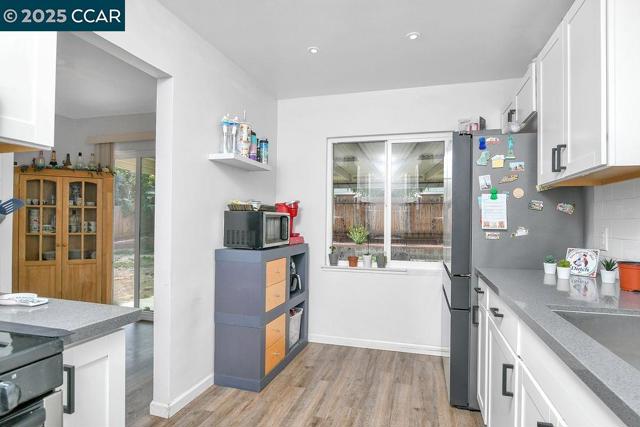 Charming Updated Home with Modern Upgrades and Sunset Views This beautifully updated 3-bedroom, 1-bath single-family home is move-in ready and full of thoughtful upgrades inside and out. Step inside to find durable LVP flooring throughout and a remodeled kitchen featuring quartz countertops, newer appliances, and crisp modern finishes. The updated bathroom adds a fresh, contemporary touch. Enjoy peace of mind with brand-new plumbing and a new sewer system completed within the last six months, along with newer HVAC and vinyl windows for year-round comfort. The home’s east-facing orientation welcomes morning light in front and offers stunning backyard sunsets in the evening. Outside, a charming flower bush and front lawn create inviting curb appeal, while the spacious backyard—with a new fence and low-maintenance landscaping—provides plenty of room to relax or entertain. A single-car garage adds convenience and extra storage. Ideally located near freeway access, this home offers both comfort and convenience—perfect for commuters and anyone seeking a beautifully updated, move-in-ready property.
