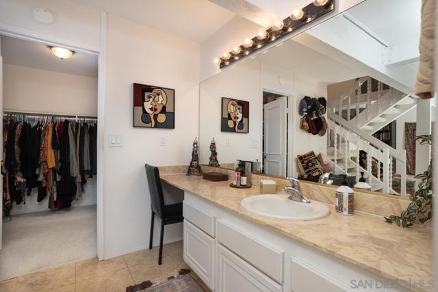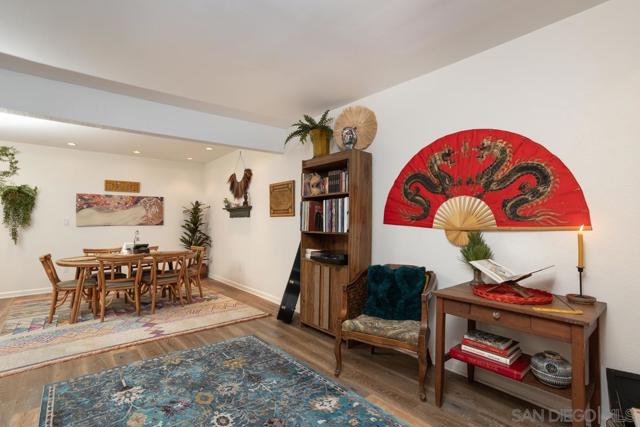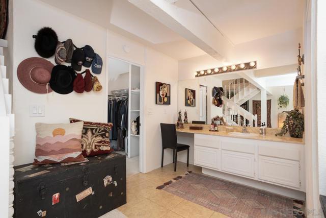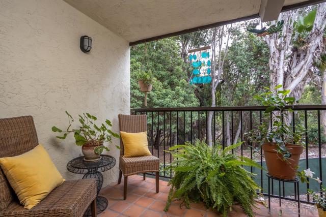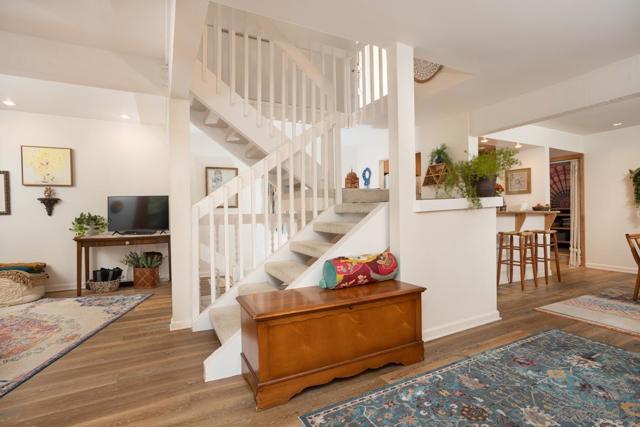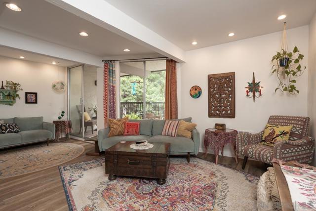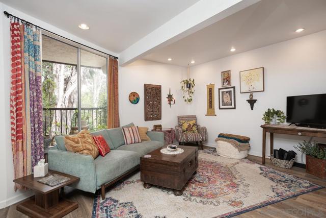 Welcome home to your La Costa Hideaway, featuring over 1,750 sq ft of tree-lined serenity. Enjoy a spacious and private tri-level retreat featuring floor-to-ceiling views of lush greenery, patios on each level, and a fully fenced yard on the ground floor. The open-concept layout is sure to impress, complemented by warm wood cabinetry, an eat-at kitchen bar, and a flexible space perfect for a pantry or craft room. The home also boasts recessed lighting and luxurious plank floors throughout. This blend of indoor/outdoor living with a boho 70’s charm and thoughtful modern updates throughout make this the place to call home. Not to mention it is quiet and inviting—your own hidden retreat in the heart of La Costa. Seller also have leases solar but contract can be cancelled or assigned for a low cost of $160 per month.