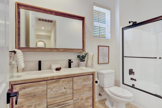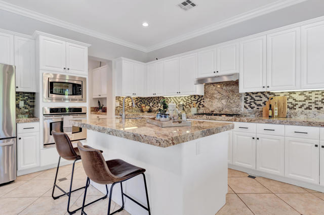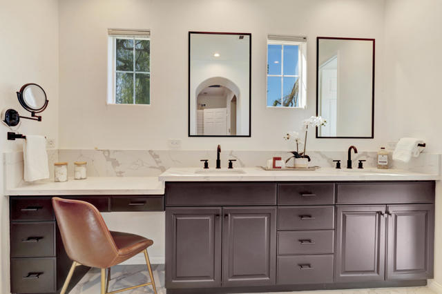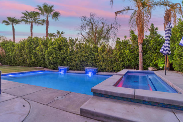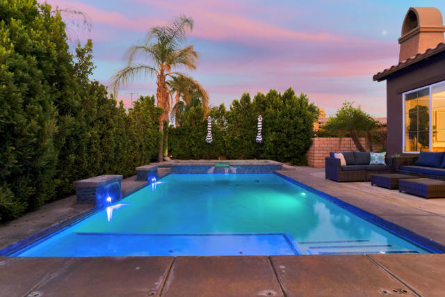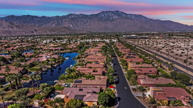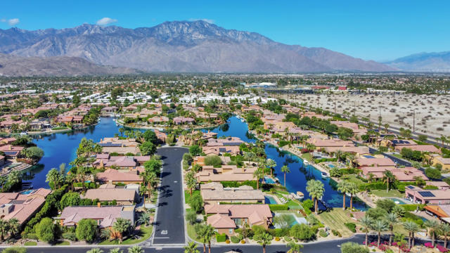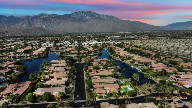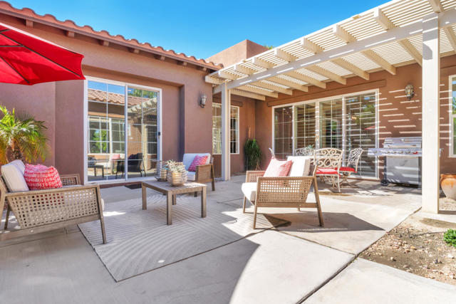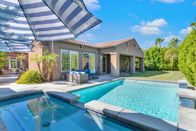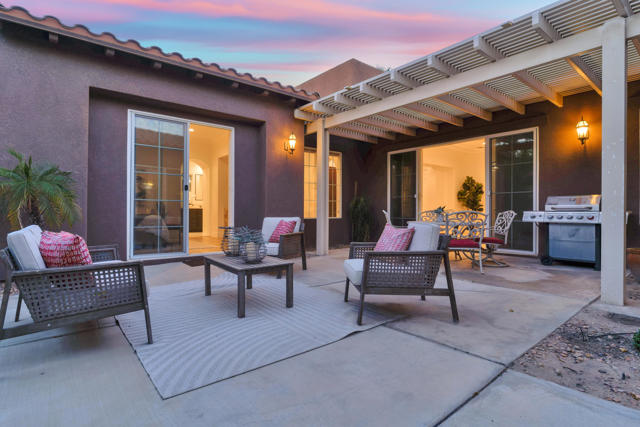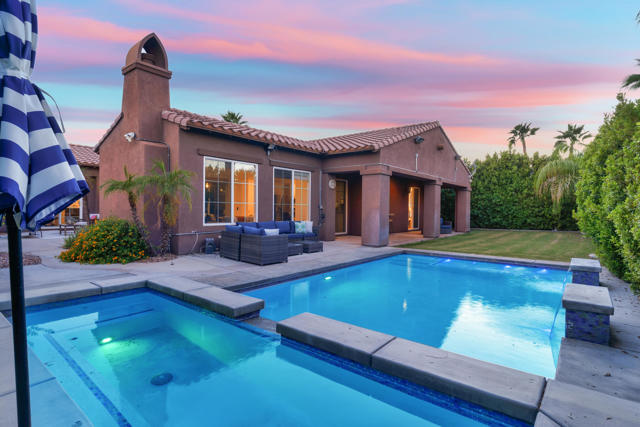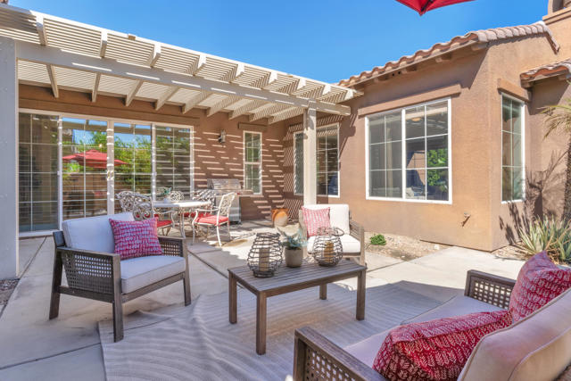 Experience resort-style living in Santo Tomas, a private, gated, lake community in Rancho Mirage. Residents enjoy a 9-acre lake with waterfalls, boat launch, and a sports membership at Mission Hills Country Club offering pickleball, tennis, fitness, swimming, dining, and social events. This beautiful 3-bedroom, 3-bath home offers a spacious open floor plan with soaring ceilings, an abundance of windows that allow natural sunlight to flood the interior of the home, multiple entertaining spaces, and seamless indoor/outdoor living. The gourmet kitchen features a large island, stainless steel appliances, and a nearby butler's pantry, flowing effortlessly into the great room and dining areas. The oversized primary suite provides privacy and separation with a spa-inspired bath with dual vanities, stunning walk-in shower, and generous walk-in closet. The Guest suites are on the other side of the home, sharing a Jack-and-Jill bath. There is an additional powder room, laundry room with sink, and attached two-car garage. Outdoors, enjoy both a central courtyard and an expansive backyard retreat with covered patios, along with a private pool and spa. Whether hosting dinner parties in the shade or relaxing by the water, this home is designed for desert living at its finest. With low HOA dues and access to Mission Hills Country Club, plus proximity to downtown Palm Springs, El Paseo shopping, world-class golf, and Aqua Caliente Casino, this Santo Tomas residence is the perfect blend of privacy, luxury, and lifestyle.