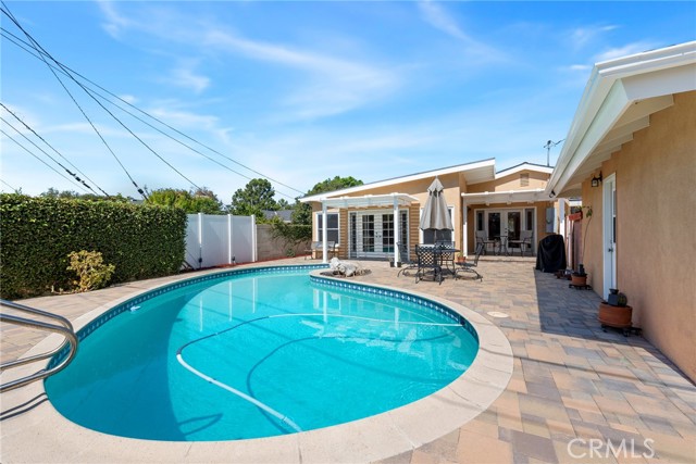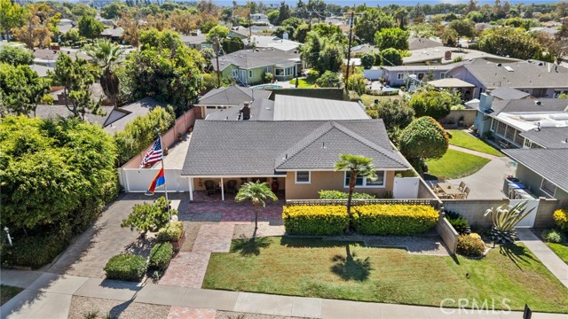 Welcome to this stunning residence in the highly sought-after Floral Park neighborhood of Santa Ana! Step inside and experience timeless appeal with modern convenience. This beautifully maintained home features original hardwood floors, a spacious open floor plan, and fresh interior paint. The inviting living and dining are enhanced by skylights that fill the space with natural light and a cozy fireplace that adds warmth and elegance. The family room offers a comfortable setting for gatherings, complete with built-in bookcases that add character and functionality. The kitchen, showcasing elegant Caesarstone countertops, premium appliances, slate flooring, and abundant wood cabinetry. The home’s layout provides privacy and comfort, featuring well-appointed bedrooms with window shutters, a Jack-and-Jill bathroom, and a second full bath with bathtub. A convenient laundry area adds practicality to daily living. Additional highlights include central air conditioning for year-round comfort. Step outside to enjoy the best of Southern California living — a low-maintenance backyard with pavers and a sparkling swimming pool, perfect for relaxing or entertaining. The long driveway offers ample parking and leads to a detached two-car garage. Nestled in the heart of Floral Park, one of Santa Ana’s most beautiful and historic neighborhoods, this home is surrounded by tree-lined streets, classic architecture, and a strong sense of community. Enjoy nearby parks, charming cafes, and local events that make this community one of the most desirable places to live.