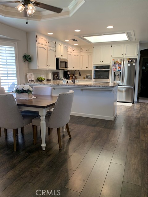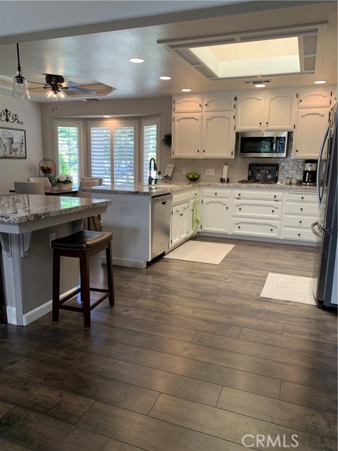 Quality home in excellent condition located in desirable Mansionette area. Vaulted ceiling, ceiling cutouts, skylight in LR. Home has two Master Bedrooms, with one currently used as family room but located on opposite side of house with separate access through garage; great for guests or in-laws. 3 of the 4 bedrooms have walk-in closets. 3 fireplaces - living room, master bedroom, and outdoor separate patio area. Jacuzzi tub with separate shower in master bath. Kitchen, flooring all remodeled. Solar owned by seller, low monthly lcost with small uncharge. Nice cut-de-sac lot with large backyard, separate patio area with fireplace, shed, fountain in backyard and more. 8 fruit trees of various varieties. This home is in turn key condition!