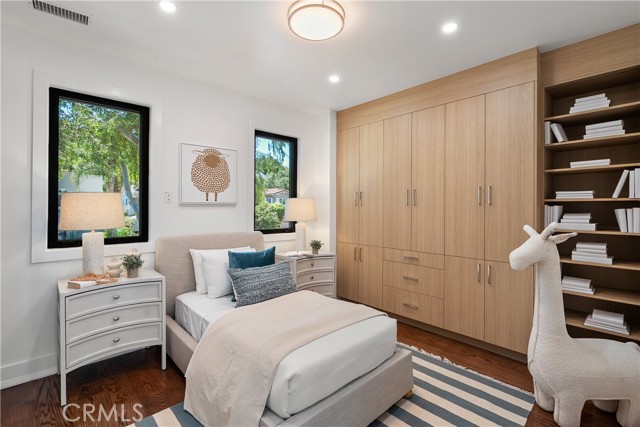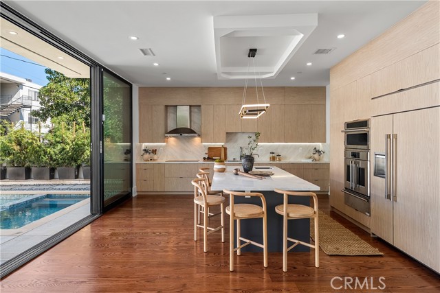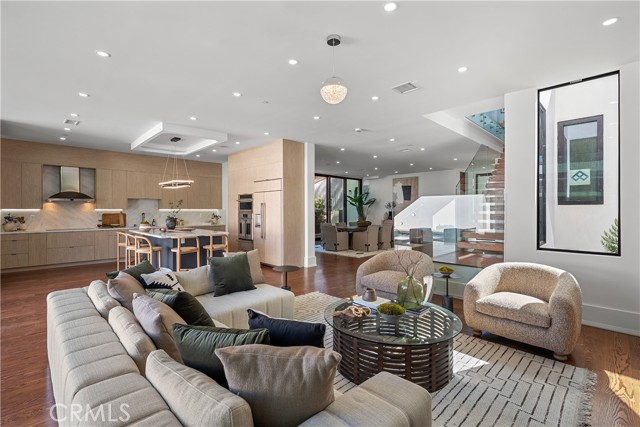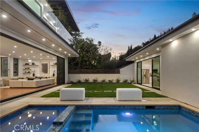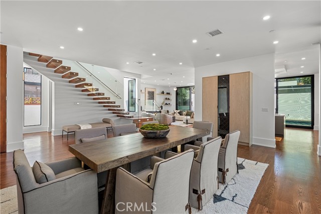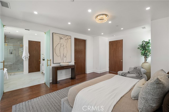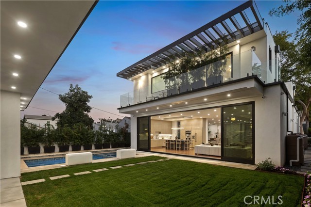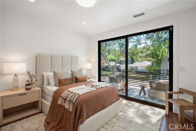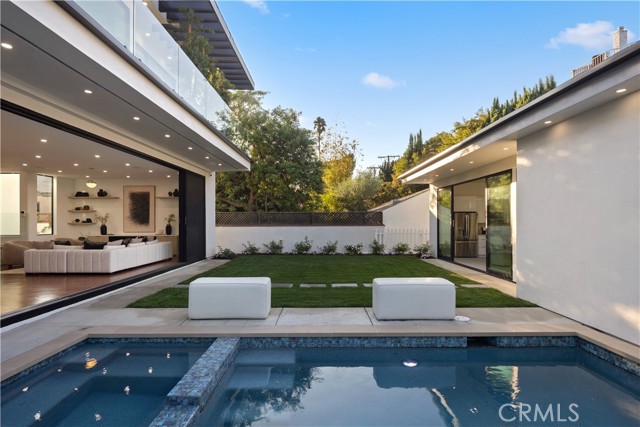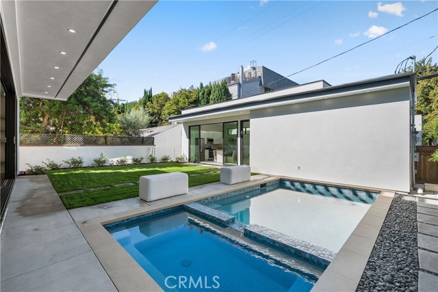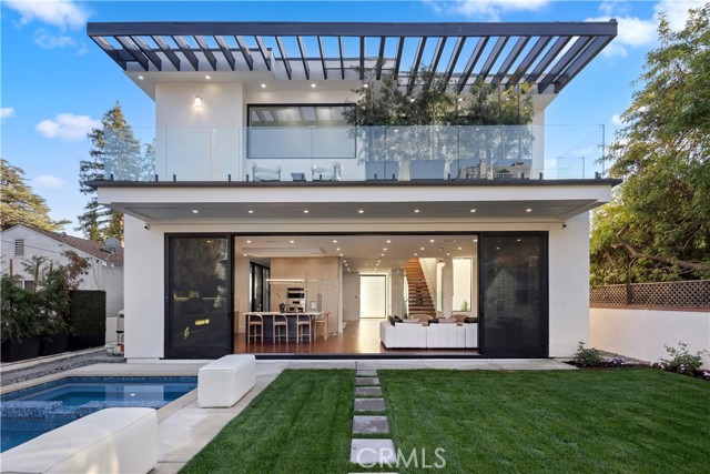 Situated South of the Boulevard on one of the most desirable streets in Sherman Oaks, this newly constructed gated estate offers a 5-bed, 6-bath main house and 1-bed, 1-bath ADU. Designed for modern living, the bright and airy open-concept floor plan is highlighted by lofty ceilings and walls of glass that flood the space with warm natural light. A culinary enthusiast's dream, the gourmet kitchen comes equipped with top-of-the-line Monogram appliances, quartz countertops and a large island with bar seating. The spacious family room features a sleek fireplace and floor-to-ceiling sliding glass door that spans into the kitchen, seamlessly extending your living space outside for true indoor-outdoor living. Head outside to your serene backyard retreat, where you can take a refreshing dip in the sparkling pool/spa, entertain guests in style or relax in total tranquility. Rounding out the main level is a formal living/dining room with a built-in wine cabinet and additional oversized sliding glass door that opens to a side courtyard, along with an ensuite bedroom and powder bathroom. Ascend the floating staircase to find four generously sized ensuite bedrooms and a dedicated laundry room. Unparalleled luxury awaits you in the expansive primary suite, which boasts a private patio, custom walk-in closet and lavish ensuite bathroom, complete with a soaking tub, oversized rainfall shower, smart toilet and double vanity. At the rear of the property, a versatile 1-bed, 1-bath ADU with a living room and full kitchen provides the perfect space for extended family, guests, an office or home gym – the possibilities are endless. Additional highlights include solid hardwood floors, a security system, central vacuum, two-car garage and gated driveway. Perfectly positioned in the heart of Sherman Oaks, this property is only moments away from trendy restaurants and boutique shops found along Ventura Boulevard, and offers easy access to the Valley, Westside, 101/405 freeway and so much more.