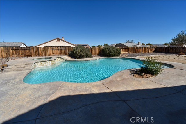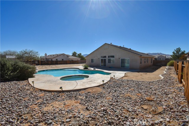 Welcome to your dream Home nestled within the highly sought-after community of The Vinyards! This spacious 5-bedroom, 3-bath residence offers a generous 2,570 m/l square feet of a nicely designed living space on almost a half acre of fenced land, in a cul-de-sac. Enjoy both formal and informal living and dining areas providing flexible spaces for hosting gatherings or comfortable daily living. The kitchen offers granite counters and an island, ample storage. Five bedrooms include a convenient Jack 'n' Jill bathroom, ideal for family or guests. Other notable features include a cozy fireplace in the family room for those cooler evenings, access to patio and pool, an inside laundry room with storage and a specious three car garage, and a newer tankless water heater. Other key features include a backyard with a magnificent inground pool and spa with salt water options, perfect for year-round enjoyment. This property also caters to your adventurous side with dedicated RV parking and hool-ups. Located in a prime Apple Valley location, close to shopping, entertainment, medical facilities and much more, and offers everything you need for a premium High Desert lifestyle.