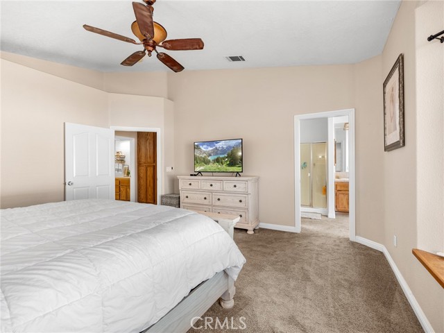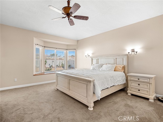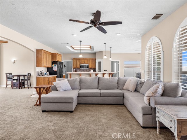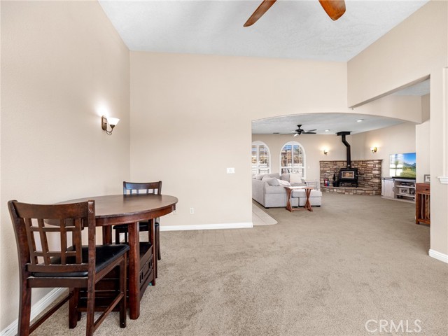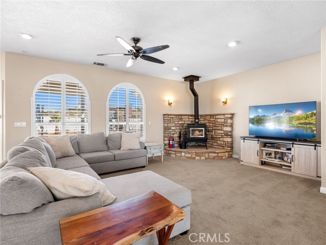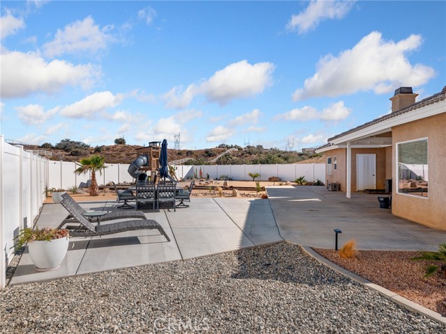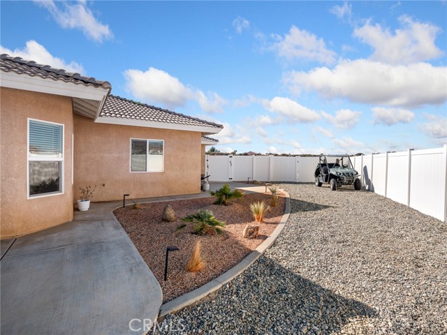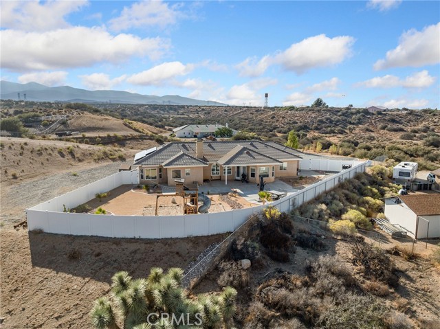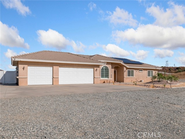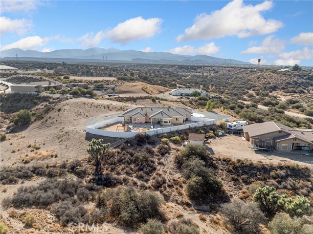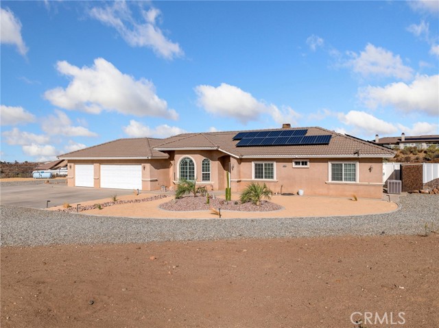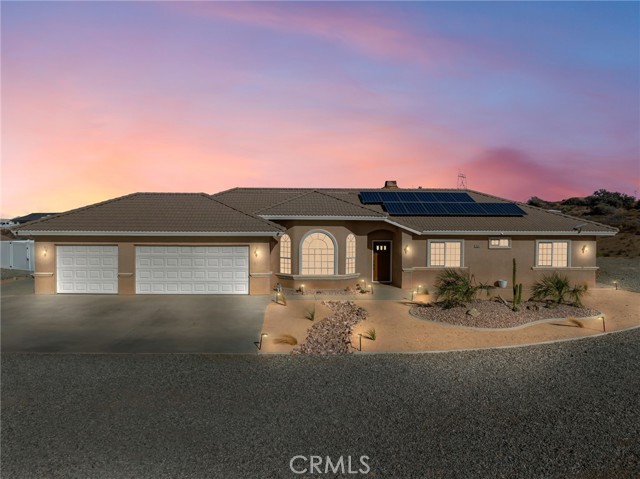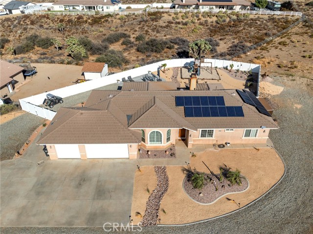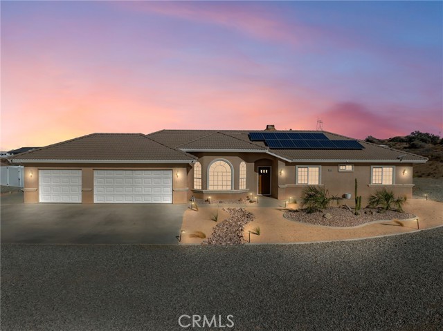 Welcome to Your New Home! Enter through the solar-powered entry gate and discover this well-maintained, tastefully updated, and move-in ready home. Situated on an elevated 2+ acre lot, you'll enjoy panoramic views of snow-capped mountains and the desert valley below—a peaceful retreat that perfectly balances comfort and efficiency. Curb Appeal & Outdoor Features New desert landscaping in both front and back yards Freshly painted trim and eaves for a clean, updated look New front door adds charm and security 5-camera security system for added peace of mind Backyard is fully fenced with upgraded vinyl fencing, with 3 gated access points Energy-Efficient & Smart Upgrades Owned solar system – enjoy the savings with no lease Smart thermostat for efficient climate control Smart bathroom fan with Bluetooth and customizable light settings Energy-efficient lighting throughout the home Interior Highlights Welcoming family room with a cozy wood-burning stove Open-concept kitchen with a breakfast bar and plenty of cabinetry – Stove and dishwasher replaced in 2019 Spacious primary suite featuring: Lockable walk-in closet with motion-sensor lighting Upgraded can lighting with mood settings (also in living room) Three full bathrooms include: Newer tall toilets in all bathrooms Updated fixtures in hall and guest baths One bedroom includes child-safety electrical outlets Garage & Storage Finished garage with sleek, durable epoxy flooring—perfect for a workshop, gym, or clean storage space Conveniently located moments from the I15 freeway perfect for commuters. Lots of privacy, but close enough to all amenities.