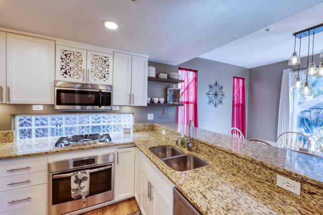Don't miss out on this light and bright 3 bed 2 1/2 bath home in a lovely tree lined neighborhood. You'll love the recently remodeled cooks kitchen with granite counters, stainless appliances, and lots of custom touches. The dining area has beautiful hanging pendant lights, and a slider which opens up to the private backyard. The bright open living room has cathedral ceilings, tiled gas fireplace, and built-in shelves. New floors throughout! Upstairs you'll find a great primary suite, with a lots of upgrades in the bathroom, and large walk in closet. The other two bedrooms have great closet space as well. All of the bathrooms have been upgraded, featuring marble slabs, tiled floors and more. You'll appreciate the convenience of the two car garage, leading into the laundry area, with access to the kitchen though a sliding barn door. Step outback to find an inviting space with pavers, a deck, and filtered sunlight from the trees in the greenbelt behind the property. Welcome home!