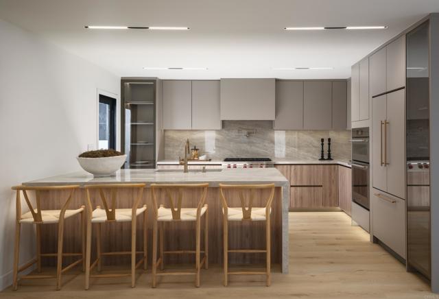 Welcome to your dream home in one of San Diego’s most coveted neighborhoods. This fully reimagined 4-bedroom, 3.5-bath residence offers over 3,200 sq ft of designer-curated living, with $400,000+ in premium upgrades throughout. From its striking curb appeal to the sleek white oak pivot door, every detail has been crafted to impress. Inside, enjoy luxury vinyl plank flooring, Taj Mahal quartzite counters, custom Euro-style cabinetry, and dramatic floor-to-ceiling tile accents. The open-concept layout is perfect for both everyday living and entertaining, highlighted by a chef’s kitchen and a 16-foot bifold door that connects seamlessly to the outdoor oasis complete with built-in BBQ, serene landscaping, and space to relax or gather. The spa-inspired primary suite offers a true escape with a soaking tub, double vanities, and elegant gold finishes. Unique features like a sculptural staircase, glass wine cellar, and full smart home integration bring sophistication and innovation to everyday life. With top-tier dining, shopping, and beaches just minutes away, this home blends high design with laid-back California living. Don’t miss this rare opportunity, schedule your private tour today.