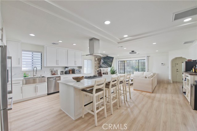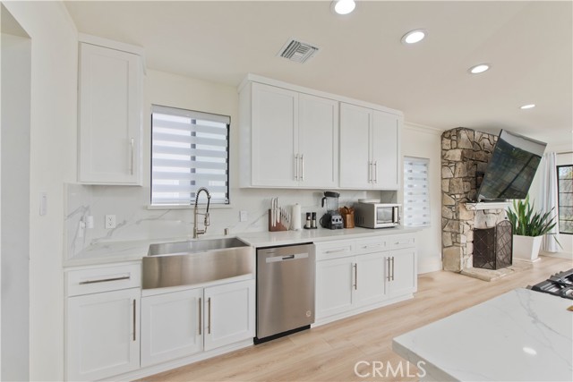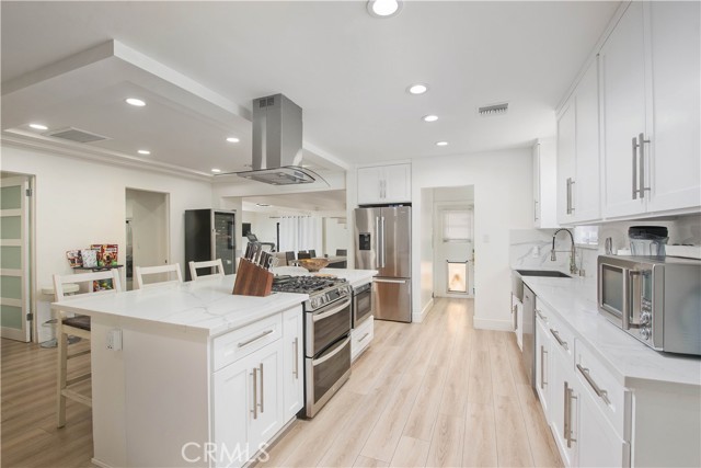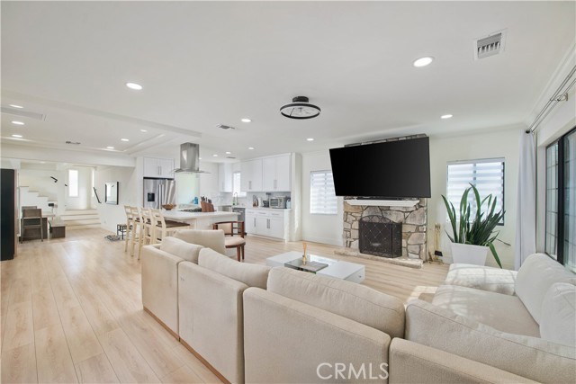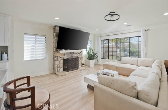 Welcome to an exquisitely remodeled residence on a quiet, tree-lined street, where pride of ownership defines the neighborhood. Surrounded by long-time residents and impeccably maintained homes, this property offers both serenity and sophistication. The residence has been fully renovated with no detail overlooked. Every surface has been thoughtfully updated to include, new floors, lighting, HVAC, bathrooms, kitchen, landscaping, just to name a few...creating a seamless blend of modern comfort and timeless elegance. The open-concept floor plan flows effortlessly from the entryway into the living room, kitchen, dining, and family room. Vaulted ceilings and a carefully engineered roofline provide a sense of volume and airiness, while two striking stone fireplaces anchor the main living spaces with warmth and charm. At the heart of the home is the chef’s kitchen, highlighted by its elegant marble countertops, custom cabinetry and grand center island integrated with storage, built-in under-shelf microwave, and stainless appliances. Entertain with ease thanks to the adjoining family room’s wet bar and newly added powder room. Downstairs, a Jack-and-Jill bathroom complements the guest bedrooms, while a dedicated laundry room with private service entrance enhances convenience. Upstairs, the expansive primary suite offers sweeping views of the property, a generous walk-in closet, and spa-inspired bathroom featuring a glass-enclosed shower reminiscent of a Las Vegas executive suite. The outdoor spaces are equally refined. A large backyard with lush grass invites relaxation, while the front yard has been reimagined with tropical landscaping, privacy trees, and a grand Magnolia tree as a centerpiece. The property also includes a two-car garage and a separate rear workshop, perfect for hobby enthusiasts or as additional storage. Beyond the home itself, the location is unmatched. Just one short mile from Sofi Stadium, Intuit Dome, and the Forum, you’ll have world-class sports, concerts, and entertainment at your doorstep. Inglewood’s vibrant dining scene is only minutes away, and travel is effortless with its close proximity to LAX, downtown LA and beyond. Every aspect of this home speaks to quality, comfort, and elegance—an ideal setting for those who value style, privacy, and refined living, with the city’s premier destinations within easy reach!