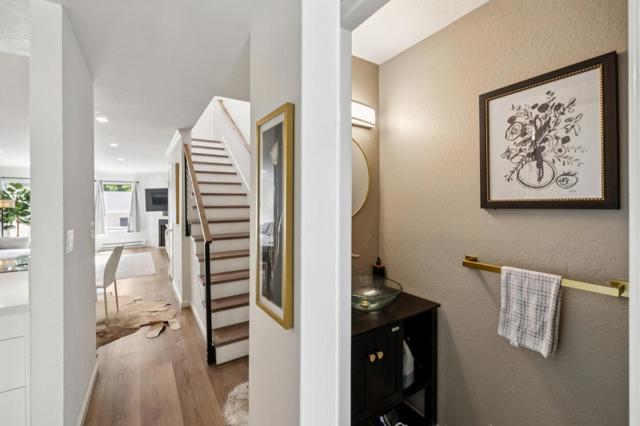 Experience modern living in this beautifully remodeled townhouse, featuring an inviting open floor plan, a cozy fireplace, and a spacious private balcony perfect for relaxing or entertaining. Enjoy a gourmet kitchen with sleek quartz countertops, new cabinetry, and high-end stainless steel appliances, including a refrigerator and dishwasher. Recent upgrades include new flooring, modern high-end stair railings, bathroom vanities, a high-quality washer and dryer, and dual skylights that flood the home with natural light. Located in a boutique complex of just 28 units, residents enjoy a community swimming pool and proximity to the vibrant shops and dining of downtown Palo Alto or Menlo Park. This is an exceptional opportunity for comfort, style, and premier Peninsula living.