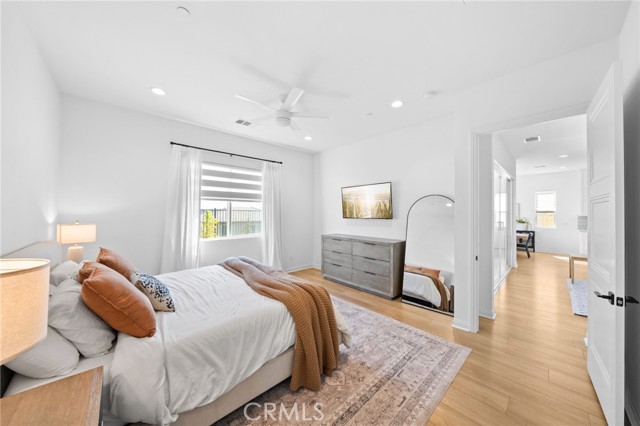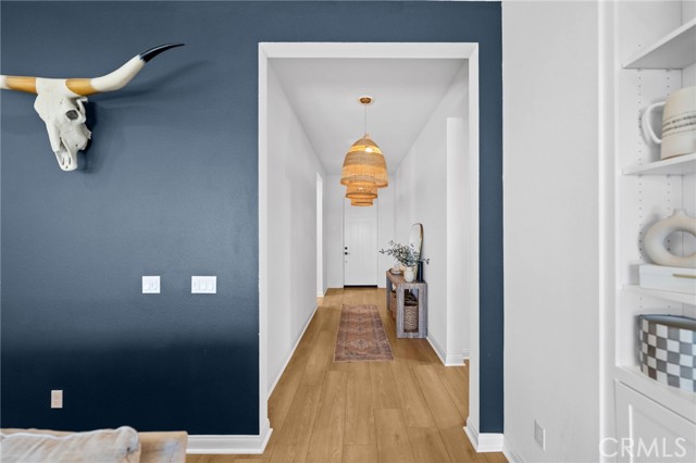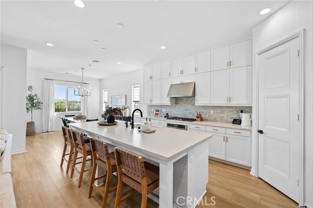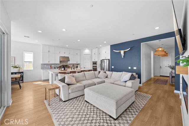 This is a home that makes staying in feel like a luxury. From the moment you step through the front door, wide-plank flooring, soaring 10-foot ceilings, and statement lighting guide you into a space that feels bright, open, and thoughtfully designed. At the heart of the home, the kitchen sets the stage for everything from quiet mornings to lively gatherings. Custom cabinetry extends to the ceiling, velvet quartz counters bring understated sophistication, and WiFi-enabled Café appliances make cooking—and even preheating—effortless. A water purification system with softener and reverse osmosis ensures no detail has been overlooked. Natural light pours into the dining area, where windows frame lush greenery and make every meal feel like it comes with a view. The living room, anchored by its custom built-ins and modern fireplace wall, flows seamlessly to the California room and backyard. Here, endless views and a low-maintenance turf lawn expand your living space outdoors. Whether lounging in the shade, hosting around the fire pit, or watching the sunset, the backyard is a true extension of the home. The primary suite is a serene retreat, featuring velvet quartz counters, a soaking tub, seamless glass shower with floor-to-ceiling tile, and dual vanities. Additional cabinetry throughout provides ample storage, effortlessly checking a must-have box. Three secondary bedrooms are generously sized—two with plush carpet for comfort, and one with direct porch access, ideal as a playroom, office, or guest room. Even the garage has been elevated with epoxy flooring that keeps the space polished and functional, perfect for parking, storage, or weekend projects. Beyond the home itself, Sommers Bend delivers a true sense of community. With resort-style pools, relaxing spas, dog parks, and family-friendly events, there’s always something happening just outside your door. And with shopping, wineries, and parks nearby, you’ll experience the best of Temecula living without ever feeling far from home.