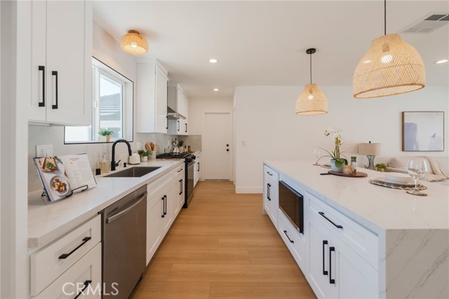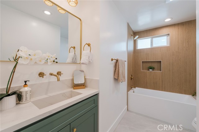 *Resort-style living in the Fullerton Hills!* Welcome to this beautifully renovated single-story, 2-car garage home, where modern design meets luxurious comfort. Located in a highly desirable neighborhood of Raymond Hills in Fullerton, CA. Fresh and clean curb appeal with new landscape and exterior paint. This stunning property boasts a spacious open floor plan with 3 generously sized bedrooms and various premium features that elevate your living experience. 2.5 bathrooms have been tastefully renovated with modern mid-century touches. Step inside through a beautiful custom door and be greeted by the inviting ambiance of the formal living room, enhanced by recessed lighting, new white interior paint, and premium laminate wood flooring throughout the entire home. All new windows and sliding doors. The heart of this home is the chef-inspired kitchen, complete with gleaming quartz countertops, all-new stainless-steel appliances, shaker-style slow-close cabinetry, and a custom kitchen island with a sleek waterfall finish perfect for both cooking and entertaining. There is a chic family room with a tiled fireplace where you can enjoy views of the sparkling swimming pool. Large dual sliding doors open up to your backyard oasis to host all of your special gatherings. With its thoughtful design, premium finishes, and a fantastic layout, this home is the perfect blend of modern living and maximum comfort. Great location with the award-winning Fullerton Joint School District and entertainment destinations. Don't miss this opportunity to make this property your DREAM HOME!