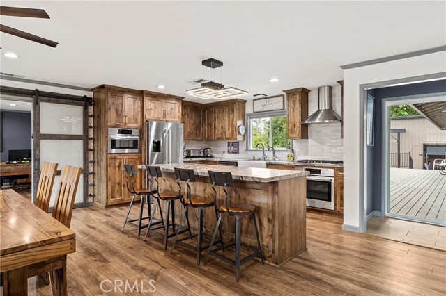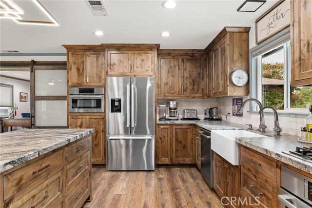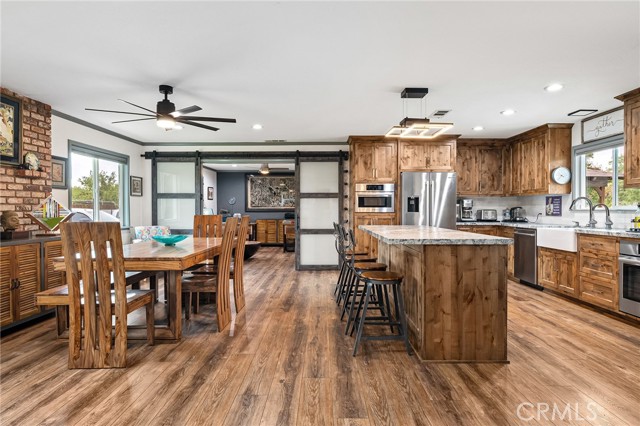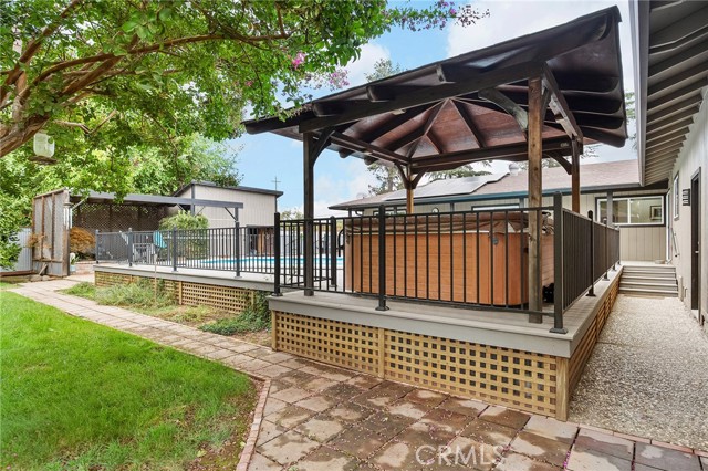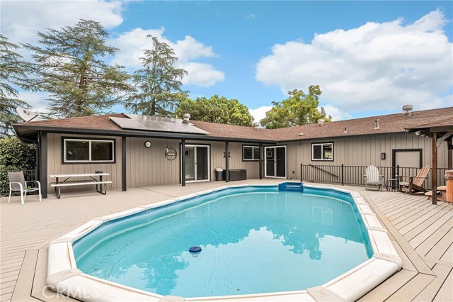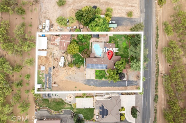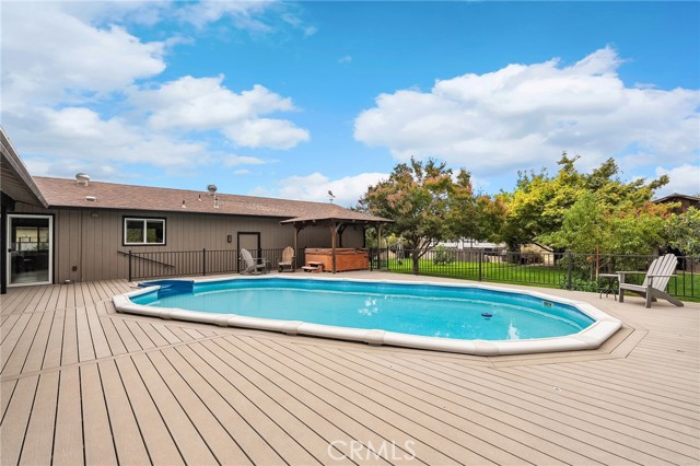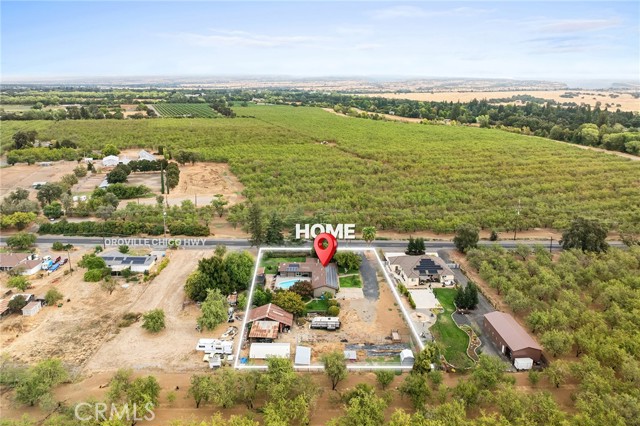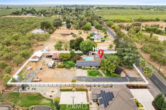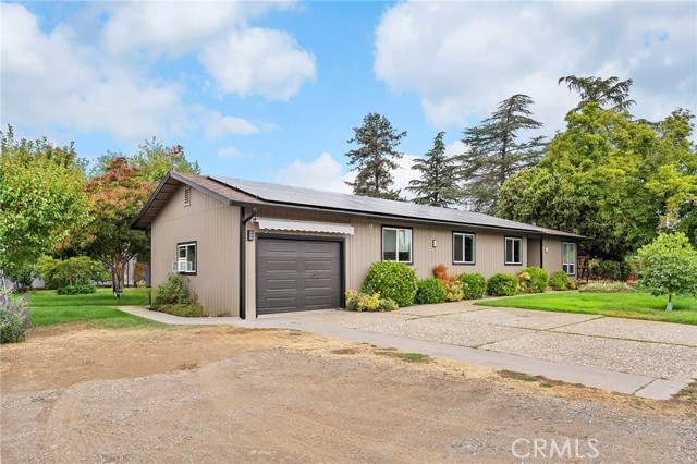 Ranch style home with barn workshop and additional detached 2 car garage. Owned 39 panel 15.6kWh solar energy system! Located in North Durham near Chico. This .95 acre property features a thoughtfully designed 2,288SF, 3 bedroom, 2 bath home with a gorgeous open concept kitchen and dining room, family room, den and indoor laundry room. Luxury Vinyl Plank flooring throughout. Both bathrooms and the kitchen have been tastefully updated. The primary bedroom suite includes a walk in closet and dual sink vanity. Sliding glass doors lead to the gorgeous back deck where the pool and hot tub are complimented by a massive fruit tree filled yard. Varieties include but aren't limited to apple, orange, apricot, peach, cherry, lime and avocado. The outdoor space includes grass areas, a peaceful water fountain and additional storage. The attached 1 car garage is currently being utilized as an art studio. The detached 2 car garage has a separate electric meter and 3 phase electrical. The rustic barn is the perfect place to restore a classic vehicle. It includes a car lift and is plumbed for a bathroom. There is ample space for all your toys and trailers. RV hookups with dump station. Huge fenced kennel. Remote operated entry gate.