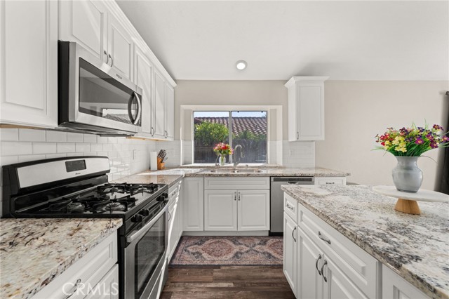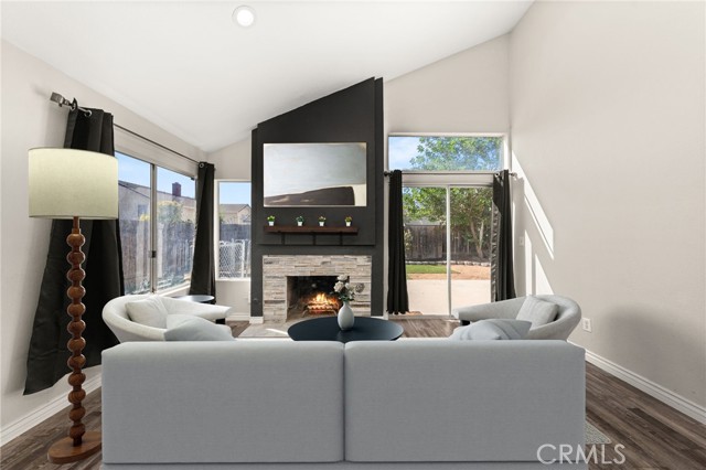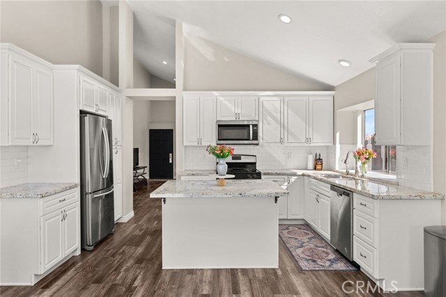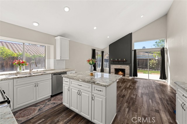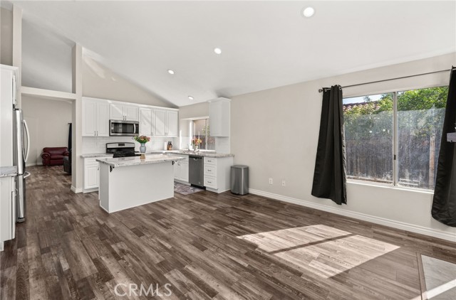 Welcome to 15026 Navel Way, a beautifully updated single-story home located in a peaceful Lake Elsinore neighborhood. This spacious 3-bedroom, 2-bath home offers high ceilings, abundant natural light, and a thoughtful open layout. The front of the home features a formal living and dining area, perfect for hosting family gatherings or holidays. The heart of the home is the large kitchen, complete with a stunning oversized island, beautiful modern appliances, and an open flow into the great room — where a cozy fireplace creates the perfect setting for relaxing or entertaining. Throughout the home, you’ll find elegant wood laminate flooring that was installed just six months ago, enhancing the modern aesthetic and adding a fresh, polished feel. Additional highlights include a 3-car garage with a sleek epoxy floor, a water softener system, and solar panels — with half already paid off for added savings. With tasteful updates throughout, this move-in ready home blends comfort, efficiency, and timeless style in one of Lake Elsinore’s most desirable neighborhoods