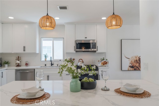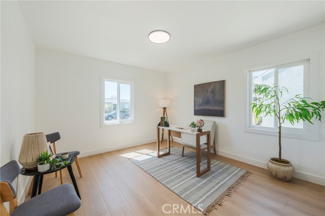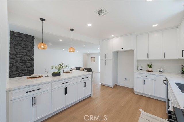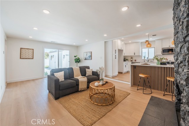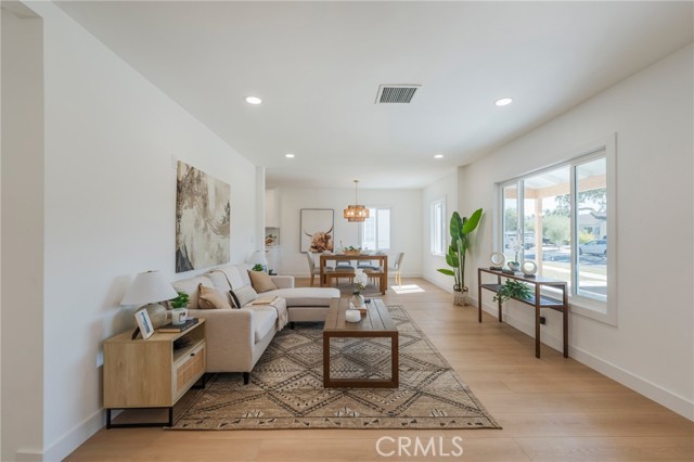 Welcome to this beautifully renovated single-story home, where modern design meets luxurious comfort. Located in a highly desirable neighborhood in Long Beach, CA. This stunning property boasts a spacious open floor plan with 4 generously sized bedrooms and various premium features that elevate your living experience. Two full bathrooms have been tastefully renovated with modern mid-century touches. Step inside through a beautiful wood door and be greeted by the inviting ambiance, enhanced by recessed lighting, new white interior/exterior paint, all new windows, and premium laminate wood flooring throughout the home. The heart of this home is the chef-inspired kitchen, complete with gleaming quartz countertops, all-new stainless steel appliances, custom shaker-style slow-close cabinetry, and a custom peninsula with a waterfall finish perfect for both cooking and entertaining. There is a warm and inviting family room and a separate formal living room, which features a beautiful fireplace, providing a perfect setting for relaxing. Enjoy the private and cozy backyard to host all of your special gatherings. The 2-car detached garage has been finished with drywall and new paint that can be used for an additional entertaining/hobby area. With its thoughtful design, premium finishes, and a fantastic layout, this home is the perfect blend of modern living and comfort. Don't miss this chance to make this property your DREAM HOME!