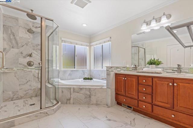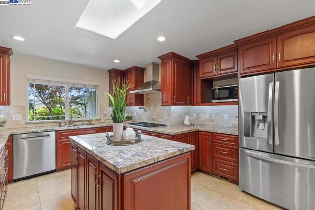 Beautiful CUSTOM Home, Fully REBUILT with classy upgrades, remodeled backyard with travertine flooring, outdoor living space, abundant floral, fruit trees, creating a welcoming retreat! Let the pictures speak for themselves! *Granite, *Quartz, *Travertine, *Crown Molding, *Cherry Cabinets with *Granite Countertops, *Porcelain, *Indoor Spa Tub are only a few of the luxury finishes this home has! HIGH CEILINGS, Expansive Living Room, Formal Dining and Great Room Area, cozy Yoga / Bonus Room, Spacious Main Bedroom Suite and Guest Bedrooms, Skylight, HARDWOOD Flooring ALL THROUGH! Solar panels, TESLA Power walls - the list goes on! Located in the Award Winning Weibel Elementary Area! Ideal commute location close to 680, 880, BART!