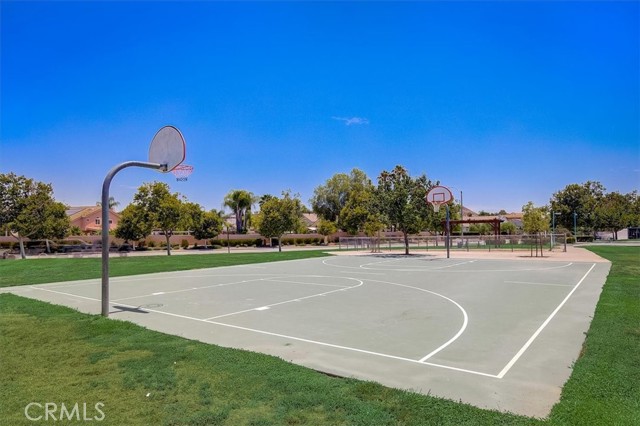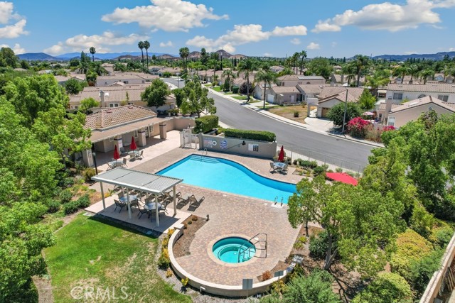 Move-in ready 2 bed, 2 bath home located within the highly desirable Andalusia community at Menifee Lakes is ready for its new owner! NOT A 55+ COMMUNITY. Conveniently located 3 doors away from the community pool and spa as well as exclusive access to the Lakes! This turn-key home features great curb appeal with well manicured landscaping, and the interior is open and spacious with vaulted ceilings, carpet, and tile flooring, and neutral paint scheme. The living room features skylights, a cozy fireplace, and flows into the formal dining room which sits just off of the kitchen with wood cabinetry offering lots of storage space, tile countertops, and an in-kitchen breakfast nook area. Both bedrooms are generously sized with the large primary suite featuring a private ensuite with dual sink vanity and a walk-in shower. There is also a hall bathroom for the second bedroom and guests to share, as well as a laundry room with additional storage space and direct garage access. Enjoy the low maintenance backyard with full fencing, concrete and rocks - this is the perfect space for a patio set and to entertain guests! Residents also get to enjoy an assortment of amenities including a sparkling pool and spa, playground, trails, tennis courts, basketball courts, and exclusive access to Menifee Lakes! Also conveniently locate near the new Menifee Library, Wheatfield Park, as well as schools, shopping, dining, and more! Schedule your private tour today!