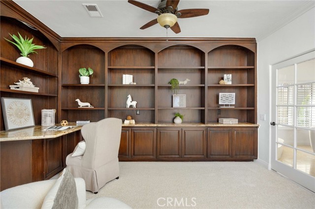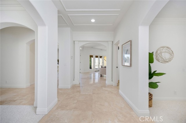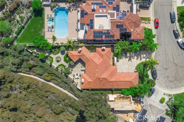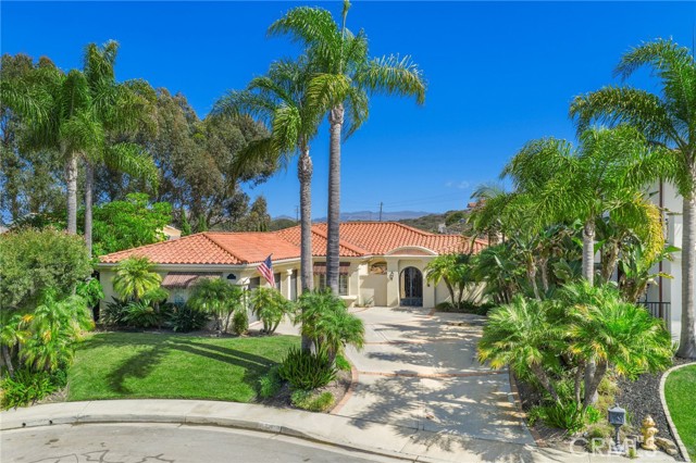 Quite possibly one of San Clemente’s most private single-level estates, this custom home is tucked at the end of a quiet cul-de-sac in the coveted Misty Ridge community. Behind a wrought-iron gate, a manicured courtyard introduces grounds that feel almost storybook — lush gardens and pristine landscaping create a setting rarely found in coastal Orange County. Glass fencing frames unobstructed hillside views and golden sunsets over Saddleback Mountain, while an outdoor kitchen with built-in refrigeration invites effortless entertaining. For outdoor enthusiasts, San Clemente’s celebrated trail network sits just .2 miles away at the Ridgeline Trailhead, offering instant access to miles of scenic hiking and biking. Inside, a functional single-level floor plan unfolds with stunning decorative ceilings, graceful arch accents, crown molding, and travertine flooring. Ornate double entry doors reveal a formal living room warmed by a classic fireplace, with a separate dining room just beyond. Just off the main living area, a custom-built office offers a refined workspace. With generous cabinetry and granite counters, the kitchen transitions seamlessly into the living room, where a fireplace and exterior views create a relaxed yet elegant tone. Designed for privacy and relaxation, the primary suite offers a sitting area with fireplace, private exterior access, a cedar-lined walk-in closet, and a luxurious bath with dual vanities and a large walk-in shower overlooking the hills. Completing the residence are three additional bedrooms with built-in features and generously-sized closets, full bathroom, and dedicated laundry room. Set on an impressive 18,500-square-foot lot, the estate also features a three-car garage and oversized driveway. Rarely does a property combine this level of privacy, functionality, and beauty—an exceptional opportunity within this desired community.