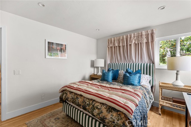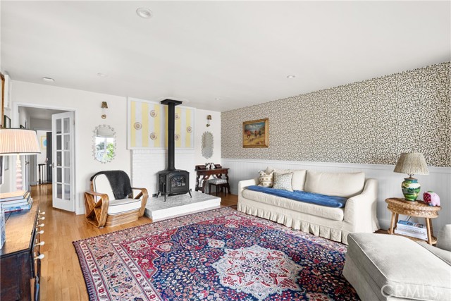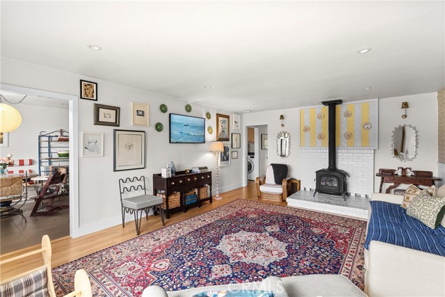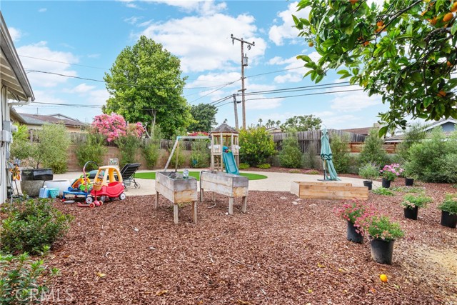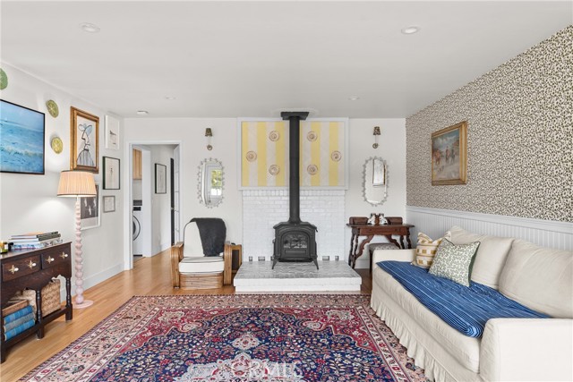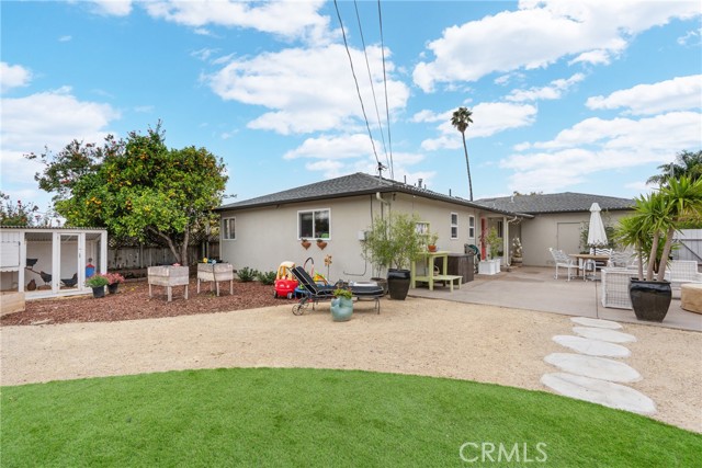 Welcome to this beautifully designed 3-bedroom, 2-bath home offering 1,350sqft of charm, character, and modern functionality. From the moment you step inside, you'll be captivated by the warm, inviting ambiance of the generous living area, featuring refinished original hardwood floors and a cozy wood-burning fireplace. The three bedrooms are located just beyond the living area, down the center hall of the home, offering a smart and comfortable layout. The kitchen is a true standout, featuring a gorgeous counter-to-ceiling wraparound tile backsplash, newly tiled flooring, sealed butcher block countertops, a skylight that fills the space with natural light, and tastefully updated stained cabinets. Anchoring the kitchen is a custom breakfast nook with built-in banquette seating, offering both a stylish gathering spot and discreet under-seat storage. Updated windows throughout add even more brightness, while an AC window unit keeps things cool and comfortable. Recent updates also include upgraded electrical, newer roofing, and a dedicated mudroom/laundry area currently being reimagined for improved function and style—expected to be completed in the coming weeks. Step outside into a thoughtfully landscaped and spacious backyard retreat, ideal for entertaining or relaxing. Enjoy a custom concrete patio with a brand-new fire pit and built-in bench seating, a low-maintenance astro turf play area, and raised garden beds perfect for growing your own produce. A new drip irrigation system efficiently waters landscaping in both the front and backyards, keeping everything lush and thriving. Fruit lovers will appreciate the mature orange tree in the backyard and lemon and lime trees in the front. This home is a unique blend of original charm and carefully curated updates, a perfect place to plant roots and enjoy for years to come.