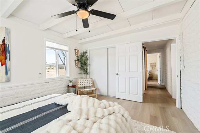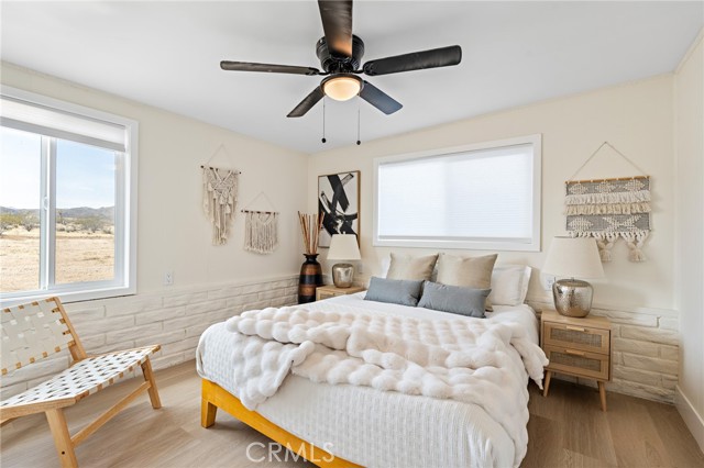 Flamingo Heights Hideaway: Set against the wide-open expanse of the Hi-Desert, this 1963 brick home blends midcentury character with thoughtful updates, creating a retreat that is both stylish and enduring. Featuring 3 bedrooms, 1 bath, and a bonus room for a studio, office, or even a coveted 4th bedroom, the layout invites creativity and flexibility. Recent improvements include high-end laminate wood flooring, a brand-new roof, and privacy fencing—adding modern comfort to timeless desert charm. The property spans 5 acres with unobstructed views of Goat Mountain, buffered by 7.5 acres of adjacent government land to preserve your sweeping panoramas and ensure lasting privacy. An original homestead cabin rests quietly among bamboo groves, awaiting transformation into a Western bar, creative workshop, or meditative retreat. Outdoor living is defined by tranquil days and starlit nights—experience breathtaking sunsets across the mesa, then watch the desert sky come alive with constellations, planets, and the shimmering Milky Way. Just minutes away, indulge in acclaimed farm-to-table dining at La Copine (5 minutes), world-class entertainment at Pioneertown’s legendary Pappy & Harriet’s (15 minutes), and restorative sound baths at the Integratron (8 minutes). Adventure seekers can lose themselves among the boulders of Giant Rock or wander the trails of nearby Joshua Tree National Park, only 20 minutes away. Flamingo Heights Hideaway is more than a home—it’s a rare opportunity to live in harmony with nature while remaining close to the best of the Hi-Desert. A true desert dream, waiting to be written into your story.