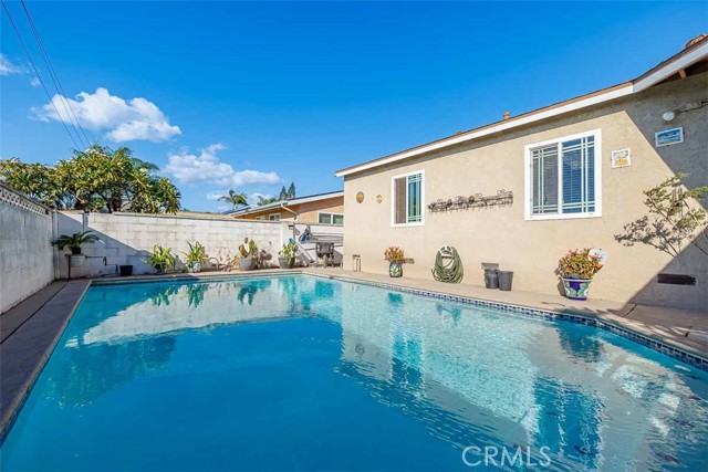 Welcome to 605 N La Reina Street, an incredible single-level pool home situated on a spacious 6,000+ sq. ft. lot in the heart of Anaheim. This rare gem is one of the few properties that backs directly to the tranquil AG Nursery—offering exceptional privacy with no homes behind. From the moment you arrive, you’ll be greeted by beautiful curb appeal, featuring a large grassy front yard and an extended driveway that accommodates up to four cars. Step inside to a warm and inviting living room with serene views of the backyard. The living area seamlessly connects to the dining space—perfect for entertaining family and friends during the holidays. The chef-inspired kitchen boasts stainless steel appliances, a built-in 5-burner gas range, double oven, and ample storage throughout. A cozy breakfast nook sits between two pantries for added convenience, and direct garage access makes daily living effortless. Flow easily through the thoughtfully designed single-level floor plan to the private living quarters, where you’ll find three generously sized bedrooms. The primary suite includes an en suite bathroom with a walk-in shower, while a full hall bath with a shower/tub combo serves the secondary bedrooms. Dual-pane sliding glass doors open to an entertainer’s dream backyard—complete with a sparkling pool, covered patio with ceiling fan, outdoor storage shed, and multiple fruit trees. This home offers unbeatable convenience, with easy access to the 5 and 91 freeways, Beach Blvd, nearby restaurants, shops, and grocery stores. Enjoy proximity to Dad Miller Golf Course (less than a mile away), Savanna High School, Peter Marshall Park, Knott’s Berry Farm, and Disneyland—all just minutes from your door. Don’t miss this amazing opportunity to own a true Anaheim gem. Schedule your private showing today!