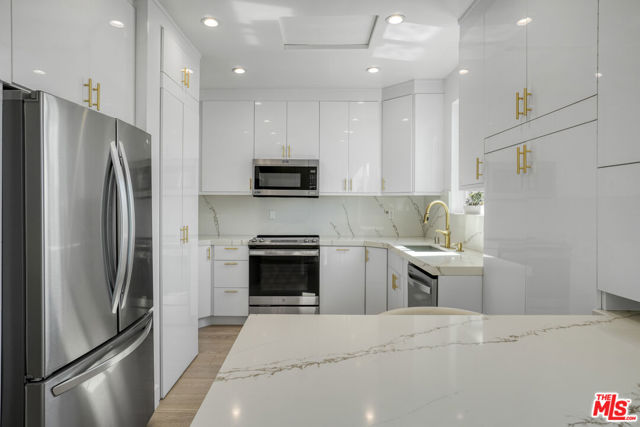 Newly remodeled 2 Bedroom 2.5 Bath condo offering a rare combination of "High Ceilings", modern finishes and an open, airy layout filled with natural light. Situated quietly at the back of the building, this unit provides beautiful city light view and 2 balconies. The brand new kitchen is equipped with high-end appliances, sleek cabinets and countertop. The primary bedroom is big with an excellent closet and spa-like bathroom. Additional highlights include in in-unit washer/ dryer, Central AC, recessed lighting and thoughtful upgrades throughout. Residents of this condo enjoy access to heated pool, gym and secure gated parking. Location is very convenient, very close to UCLA, Westfield Century City mall and Beverly Hills. A rare opportunity to lease a remodeled, quiet, safe, move-in furnished or unfurnished condo in this area.