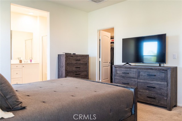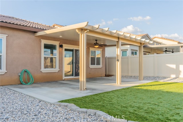 Located in the highly coveted Augusta at The Fairways community, this immaculate single-story home features 3 bedrooms, 2 bathrooms, and a bright, open layout designed for modern living. The spacious living area flows effortlessly into a sleek kitchen highlighted by granite countertops, stainless steel appliances, a large center island, and plenty of cabinet space. The primary suite offers a peaceful retreat with dimmable lighting, a generous walk-in closet, and a private bath with a step-in shower. The additional bedrooms are perfect for family, guests, or a home office, while the interior laundry room adds everyday convenience with built-in storage and attic access. This home is loaded with upgrades, including a tankless water heater, solar through Sunrun, and a fully finished garage. Smart Home features let you control the garage, entry doors, security system, thermostat, lighting, and irrigation directly from your phone. Step outside to a beautifully landscaped backyard featuring an Aluma-wood patio cover, artificial turf, palm trees, decorative rock, and a low-maintenance underground sprinkler system. The ADT security system includes a panel, door camera, sensors, and motion detection for added peace of mind. Residents of The Fairways enjoy access to community pools, parks, walking trails, playgrounds, and a clubhouse—all within minutes of golf courses, schools, and shopping. Stylish, efficient, and move-in ready, this Beaumont home perfectly blends comfort, technology, and resort-style living.