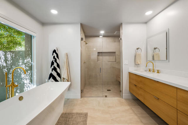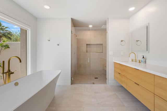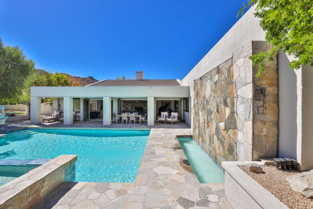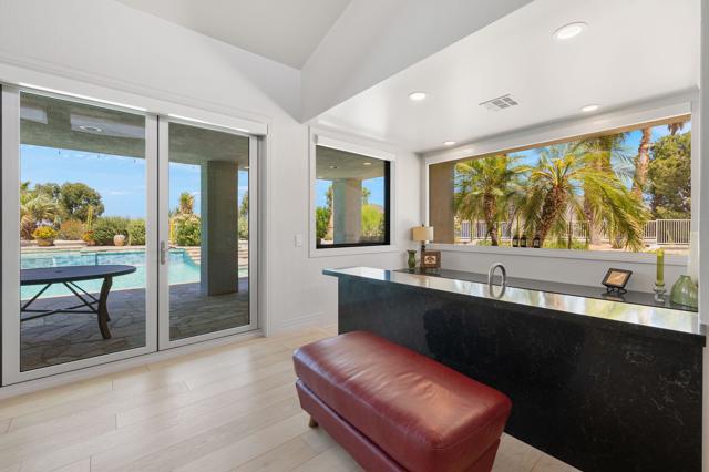 Custom Estate Home on 1/2 acre in the heart of Ironwood Country Club. Private setting with mountain views and serene gated grounds. Enjoy the outdoor amenities of pool & spa, waterfall wall, putting green, built-in BBQ, misters and lush landscaping. Fabulous Great Room features include Quartz stone fireplace wall, high ceilings with clerestory windows and bar area with floor-to-ceiling wine cabinet, icemaker & fridge. Enjoy cooking & entertaining in the spacious custom kitchen featuring SubZero fridge, Wolf 6-burner range, white oak cabinetry and Quartz counters. Large laundry room is adjacent to the kitchen. Doors & windows are updated and flooring is white oak engineered wood and slate stone entry hall.4 bedrooms 4+ baths with 3-ensuite bedrooms and detached casita with bath. The Primary suite has fireplace and luxurious bath with his & hers vanities & 2- cedar lined walk-in closets. Guest suite also has fireplace and there is a 3rd bedroom off the kitchen area. The bedrooms are nicely separated and each has a patio area. Multiple patios with different sun orientation allow outdoor enjoyment any time of the day. In addition to a separate entry casita there is an office plus a media room/den. The attached 3-car garage has custom flooring. This home comes equipped with a fully-owned solar panel system meaning lower electric bills and energy independence. Simply put 'this home has it all' and is offered furnished per inventory, Ironwood is a private member-owned country club with 2-great golf courses, tennis, fitness, pickleball and dining. Use of Club facilities is limited to members.