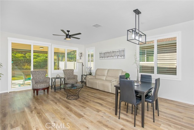 Are you ready to redefine retirement or secure the ultimate second home that sparks joy every single day? Welcome to 351 Scarlett Runner Dr., an exquisite single-story sanctuary nestled in the prestigious Four Seasons 55+ resort community in Beaumont. This stunning 2-bedroom, 2-bathroom haven, complete with a 3-car tandem garage and a versatile den, spans 1,600 sq. ft. of thoughtfully designed, light-filled space—crafted to elevate your lifestyle with effortless elegance and boundless opportunity. As you pass through the secure gates of Four Seasons, you’re greeted by lush, meticulously manicured landscaping and breathtaking mountain vistas that set the stage for a life of serenity and inspiration. This isn’t just a home—it’s a gateway to a vibrant, fulfilling chapter. Step inside to discover a timeless modern kitchen, featuring expansive countertops, a spacious walk-in pantry, a sleek central island, and appliances. The open-concept design seamlessly connects the kitchen to the dining and living areas, where abundant natural light pours in, framing picturesque views of the surrounding scenery from both your front and backyard. The backyard? A low-maintenance masterpiece designed for pure enjoyment. With no neighbors directly behind, it’s your private oasis for sipping morning coffee, practicing yoga under the stars, or hosting unforgettable evenings with loved ones. The primary suite is a retreat unto itself, boasting a spa-inspired bathroom and a generous walk-in closet that pampers you with luxury. Across the house, a private guest bedroom offers a welcoming space for family or friends, ensuring everyone feels at home. Plus, the flexible den can transform into a home office, creative studio, or even an extra bedroom—the possibilities are as endless as your imagination. But the magic of 351 Scarlett Runner Dr. extends far beyond its walls. The Four Seasons Community is a vibrant, resort-style haven where every day feels like a vacation. Dive into refreshing pools, stay active in the state-of-the-art fitness center, or challenge friends on the pickleball courts. Wander scenic walking trails, join lively social clubs, or immerse yourself in a packed calendar of events that turn neighbors into lifelong friends. This is more than a community—it’s a lifestyle that celebrates connection, adventure, and joy. Call now to schedule your private showing and step into the life you’ve always dreamed of!