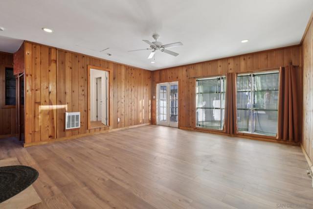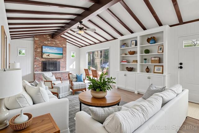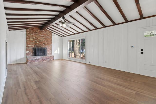 Tucked away in a picturesque Mt. Helix setting, this super charming, move-in ready home sits on a huge, flat, completely usable lot—a rare find offering endless possibilities. An inviting front porch welcomes you inside to a light-filled living room featuring a large picture window, beamed ceiling, and cozy fireplace, creating the perfect space to gather and unwind. Blending vintage character with thoughtful updates, the home features a remodeled kitchen with newer cabinetry, stainless steel appliances, and an adjoining dining room. The floor plan includes a comfortable primary suite, a guest bedroom and bath, and an enclosed patio that provides a flexible space for a home office, playroom, or laundry area. A detached flex space with its own fireplace and bath adds even more versatility—ideal as a guest house, studio, or private office. Outside, the expansive yard invites creativity with room to add a pool, garden, or outdoor entertaining area, while a separate shed offers storage or workshop potential. You’ll love the ultra-convenient Mt. Helix location, close to top-rated schools, parks, Grossmont Center, charming Downtown La Mesa shops and restaurants, and easy freeway and trolley access—perfect for enjoying East County living at its best.