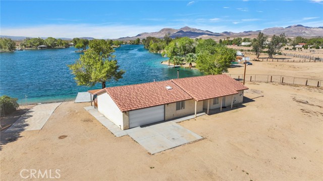 Lakefront Living in Crystal Lakes – Private Community! Welcome to this charming 3-bedroom, 2-bath home perfectly situated on just under an acre in the highly desirable Crystal Lakes community of Newberry Springs. Built in 1991 and offering 1,391 sq. ft. of comfortable living space, this home combines privacy, convenience, and stunning lakefront views. Inside, you’ll find a spacious living area featuring a free-standing wood-burning stove, perfect for cozy evenings. The tile roof adds long-lasting durability, while the attached 2-car garage provides convenience and storage. Outdoors, enjoy a full-length covered patio overlooking the water—ideal for entertaining or simply relaxing. The fenced property also includes its very own private dock, and boat launch giving you direct access to the lake, for fishing , paddle boarding, kayaking, jet skiing, boating in the summer months , during fall and winter months you can enjoy the open desert for off road exploring and the beautiful desert sunsets . Located off the 15 Fwy going to Las Vegas .