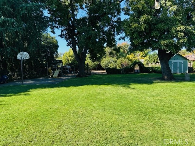 Looking for your own park-like setting, located right in the heart of Chico? This hard-to-find property boasts over two-thousand square feet, four spacious bedrooms, two full bathrooms, an attached oversized two-car garage—all situated on nearly three-quarters of an acre. Close to excellent schools and ample shopping, this home has a recently renovated kitchen and bathroom and a large laundry room with a full wall of pantry storage and shelving. With both living and family rooms, and an expansive patio off the kitchen, the house and yard are ideal for entertaining. The step-down family room has vaulted ceilings and a beautiful brick hearth with a new wood stove. But the heart of this property is its sprawling backyard and mature walnut and dogwood trees, providing a peaceful setting with plenty of shade. Relaxing on the patio feels like gazing out over a park with the sweeping lawn area, basketball court, and play structure. The back portion of the property boasts a chicken coop and run, eighteen producing fruit trees, which include peaches, nectarines, plums, cherries, one pear tree, an orange tree, and a mandarin tree, set-up on timed sprinklers and drip-lines. A fenced-off section has raised garden beds and two long rows of Olallieberries and Marionberries, yielding gallons and gallons of blackberries every summer. The property also has two storage sheds and a carport with RV parking potential. With a brand new Certainteed Landmark TL 50-year roof, newly installed flooring throughout, new paint, a decorative water fountain and flower garden, the home is an uncommon gem. This rare property won’t last long. Come check-out this peaceful retreat in the center of Chico!