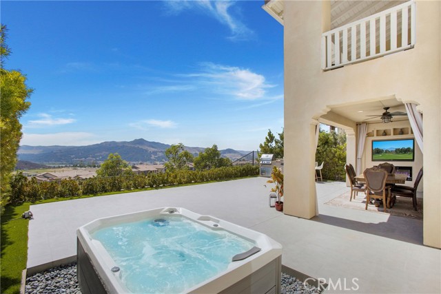 Comfort meets style in this beautifully designed home perched on an upper street of the Heirloom neighborhood, ensuring plenty of room for relaxation and privacy. Step inside and be greeted by an open and inviting layout that seamlessly connects the living spaces. The expansive living area is perfect for entertaining, with the oversized stacking door to the California Room that floods the space with natural light. The kitchen is a chef's dream, boasting KitchenAid stainless steel appliances including the 6burner plus griddle range and the 42” Built-in Refrigerator, farm sink, ample quartz counters, and a large walk-in pantry. The double ovens make holidays and entertaining a breeze. Adjacent dining area provides the perfect spot for everday dining and entertaining. Retreat to the primary suite, your personal sanctuary, complete with a luxurious en-suite bathroom that features dual vanities, a soaking tub and separate step-in shower. This Primary suite also includes a walk-in closet as well as a covered view deck with room to enjoy the gorgeous vistas. Each additional bedroom offers its own unique charm, with plenty of space, their own bathrooms as well as balconies and decks for relaxing. Two secondary bedrooms are on the second floor and one is on the first floor. Convenient Bonus Room with powder bath on the 3rd floor is a perfect office, media room or guest suite. Outside, the backyard oasis awaits! Unwind in the spa, or relax in the California room under a starry sky with a fire in the fireplace. Whether you're hosting a summer barbecue or enjoying a quiet evening under the stars, this outdoor space has it all. Nestled in a desirable location, this home offers easy access to a variety of amenities including walkable path to the school and the Hilltop Club with the gym, pool and more. Enjoy all the amenities in RMV that are benefits of living at 7 Paladino Court!