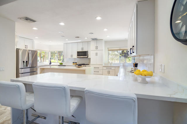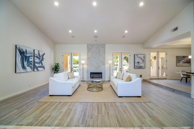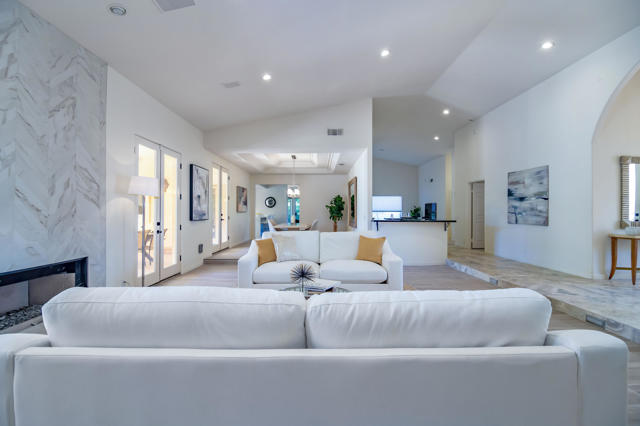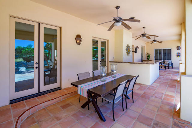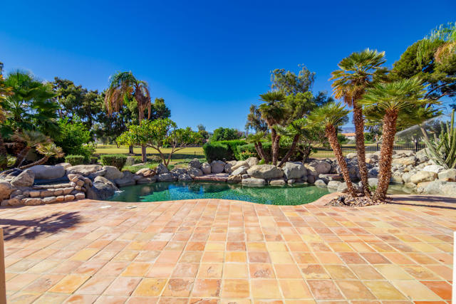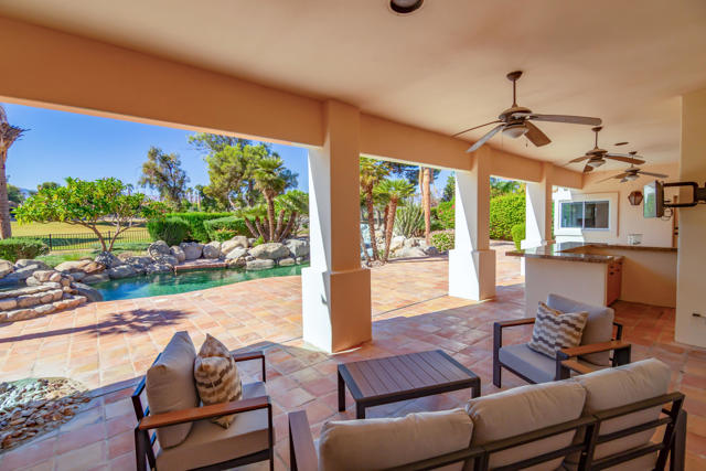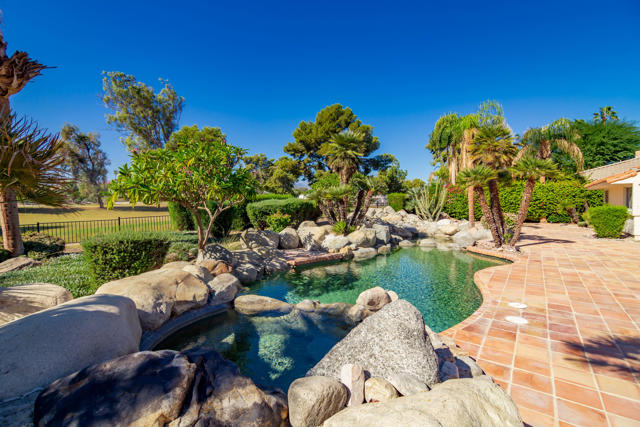 Experience unparalleled luxury in this exquisite estate offering 4 spacious bedrooms each with its en-suite bathroom; encompassing over 3,900 square feet of refined living space. Nestled within the prestigious Avondale Country Club in Palm Desert, this residence boasts prime 5th fairway views and a truly spectacular setting. Step into your private desert paradise featuring a stunning pool with shimmering waterfalls, a rejuvenating jacuzzi, opulent lounge areas, a covered wet bar, outside pool bathroom and lush, meticulously landscaped gardens--perfect for embracing breathtaking desert sunsets. The interior has been tastefully renovated, featuring sophisticated flooring, waterfall style islands in the kitchen along with brand new stainless steel appliances and cabinets. In addition, all interior bathrooms have been remodeled and beautifully updated exuding luxury at every turn. Included HOA amenities encompass 24-hour gated security, a prestigious social membership to the championship golf course, a state-of-the-art fitness center, tennis courts, and pickleball. Just 15 minutes from the world-renowned shopping on El Paseo, this luxurious estate offers an exceptional blend of prestige, comfort, and leisure.
