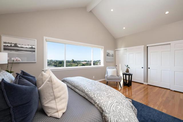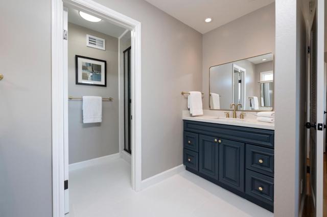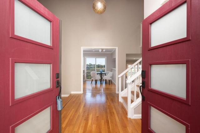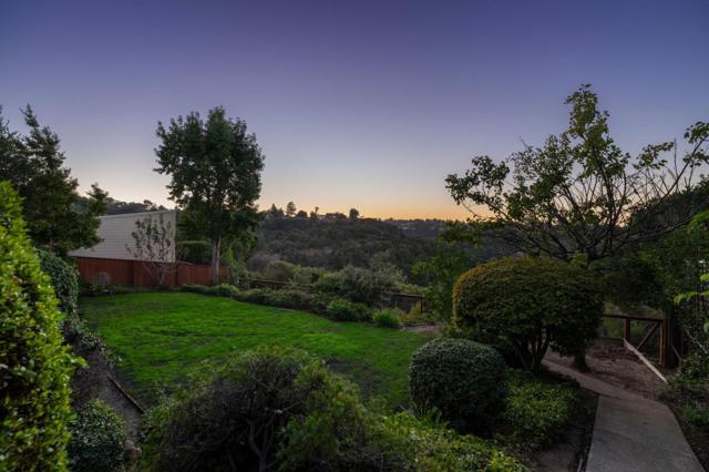 Discover your sanctuary in Belmonts highly coveted Hallmark neighborhood on a less-traveled street. The moment you open the double front doors, you are greeted with stunning, sweeping canyon views that stretch up to San Francisco. Step inside the formal entry to find an expanse of gleaming hardwood floors flowing throughout the main level. Soaring vaulted ceilings define the formal living and dining rooms, creating an airy atmosphere. The updated eat-in kitchen is bright and inviting, boasting crisp white cabinetry and stylish quartz countertops. Adjacent is the comfortable family room, which seamlessly opens via sliding glass doors to a deck and the spacious, grassy lower yard, an ideal setting for outdoor dining and play. Convenience is assured with a main-floor half bath, dedicated laundry room, and two-car garage. The upper level is a private haven of rest, featuring four generous bedrooms. The tranquil primary suite is a true retreat, complete with its own vaulted ceilings, massive views, and stylishly updated bathroom. Significantly cut your energy bills thanks to solar panels and 2 Tesla backup batteries. With highly regarded schools nearby and a serene setting, this is the perfect place to put down roots and embrace a magnificent lifestyle.