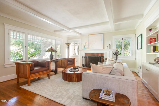 This timeless 1913 Craftsman in Pasadena's coveted Madison Heights neighborhood blends historic charm with modern comfort. Known as the Simpson House, it has been recognized by the City of Pasadena as a contributor to a potential Madison Heights Landmark District--a rare opportunity to own a piece of the city's architectural heritage.Set back from the street and amongst mature landscaping, this home greets you with classic Craftsman details -- a broad front porch, tapered columns, wood siding, and original windows that flood the home with natural light. Inside, period character abounds with hardwood floors, original built-ins, box-beam ceilings, and wood-burning fireplace in the formal living and a decorative fireplace in the dining room.This 4-bedroom, 2.5-bath home offers 2,681 sq ft of beautifully preserved charm with thoughtful modern updates. The flexible layout includes one bedroom currently used as an office/gym...ideal for today's lifestyle. The formal living room features a wood-burning fireplace and opens to the adjacent dining room, where a second fireplace adds warmth and character for gatherings. Just beyond, the kitchen flows seamlessly from the dining room, making it perfect for both daily living and entertaining. A cozy den nearby offers additional versatility, whether as a reading nook, media room, or play area.The kitchen features a center island, abundant cabinetry, and direct access to a private side patio through French Doors. The primary suite offers views of the expansive, flat rear yard, framed by mature trees and spacious enough to accommodate a pool. Additional outdoor highlights include a back porch, rear patio, and a detached garage.Centrally located, this home offers the perfect blend of architectural character, thoughtful updates, and a prime location. Rich in history and timeless in appeal, it's a true Madison Heights classic--ready for your personal touch.