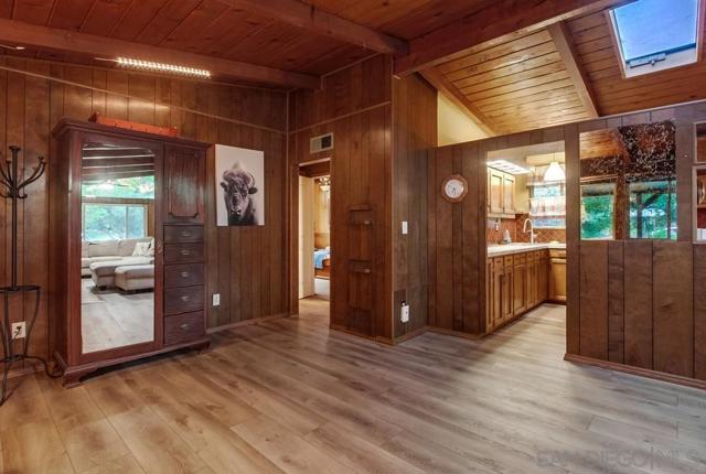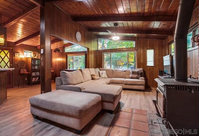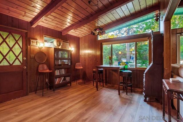 Charming home on a quiet street in the heart of Julian. This private, tucked away retreat offers a chance to enjoy all that life in the mountains has to offer. The home rests on just under 1/4 of an acre, and boasts 2 spacious bedrooms, a large living area that opens to the kitchen, and a dining space overlooking the beautiful outdoors. The custom windows throughout bring in tons of natural light and the vaulted ceilings create a sense of openness, while preserving the cozy-cabin feel. The home is perfect for a small family, or could be used as a vacation home getaway and the detached 2-car garage offers space for storage and parking. Pride of ownership abounds with updated flooring, fresh exterior paint, and dual pane windows. The front patio is the perfect spot to enjoy a morning cup of coffee or an evening outside watching the sunset. Hurry, this one won't last long! Kentwood in the Pines is only 5 minutes from downtown Julian, which is known for its historic charm, apple orchards, and stunning mountain scenery. Julian offers a peaceful retreat just an hour from the hustle and bustle of San Diego.