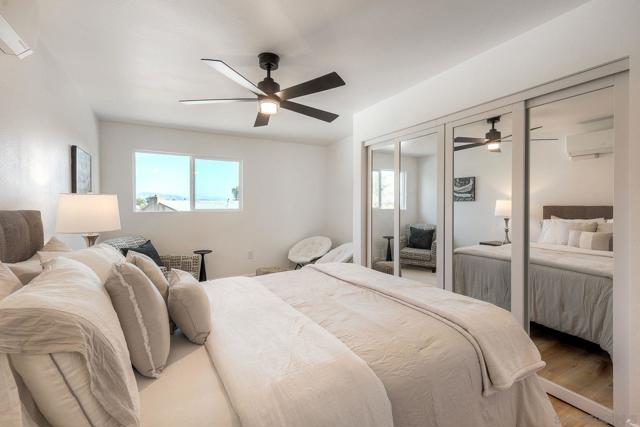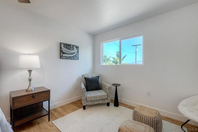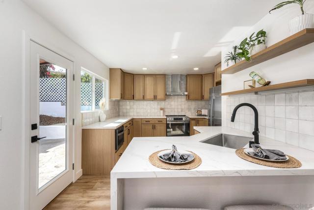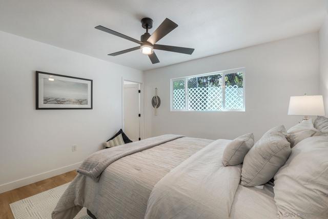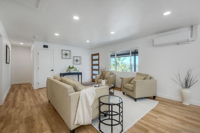 Discover this beautifully renovated, turnkey home where pride of ownership shines inside and out. Every detail has been updated—from new paint, trim, and doors to modern vinyl flooring and energy-efficient dual-pane windows. The open layout fills with natural light and flows into a stunning kitchen featuring quartz countertops, shaker cabinets, tile backsplash, and a full suite of new stainless appliances including a slide-in range, built-in microwave, dishwasher, and refrigerator with water and ice. Both bathrooms offer floor-to-ceiling tile, new vanities, mirrors, and bathtub with sliding glass enclosure. Each bedroom enjoys its own mini-split system for personalized comfort, plus wood-framed mirrored closet doors. Step outside to a massive flagstone patio perfect for entertaining or relaxing with panoramic city and mountain views. Located on a quiet street in the heart of Lemon Grove—just minutes to freeways, shopping, schools, and downtown San Diego—this property combines suburban tranquility with unbeatable convenience. The driveway and street are scheduled to be paved within the week. Pictures of the driveway have been digitally enhanced to show what the driveway will look like once completed.