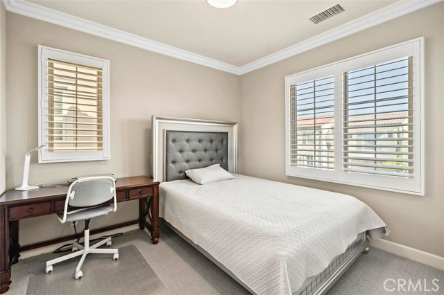 Welcome to 61 English Saddle – A Bright & Beautiful Corner Home in the Prestigious Groves at Orchard Hills.Located in the exclusive 24-hour guard-gated community of The Groves at Orchard Hills, this tastefully upgraded 4-bedroom + loft, 3 bathroom residence combines thoughtful design with modern luxury. As a desirable corner unit, the home enjoys exceptional natural light throughout, enhancing its warm and open atmosphere.The main level features an ideal floor plan with an expansive great room, gourmet kitchen, and a private guest suite with en-suite bath – perfect for multigenerational living or hosting visitors. Upstairs, the elegant primary suite is a true retreat, custom walk-in closet. The spa-inspired en-suite bath includes dual vanities, a soaking tub, and a spacious porcelain-tiled walk-in shower. Two additional bedrooms share a stylish full bath, and the versatile loft offers the perfect space for a home office. The beautifully landscaped backyard features a tranquil waterfall, a variety of fruit trees, and a charming vegetable garden – all lovingly maintained by the seller. This serene outdoor space offers the perfect setting for relaxing, entertaining, or enjoying your own private garden retreat. Residents of The Groves enjoy access to resort-style amenities including swimming pools, spa, clubhouse, BBQ areas, tennis courts, and beautifully maintained parks. This prime location allows you to walk to top-rated Orchard Hills School, nearby parks, scenic hiking trails, and upscale shopping and dining. Don’t miss this rare opportunity to own a bright, corner-lot home in one of Irvine’s most sought-after gated communities.