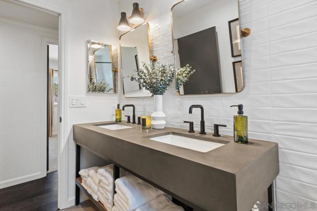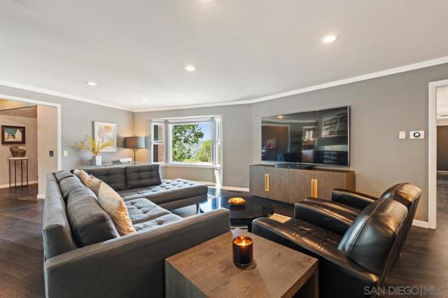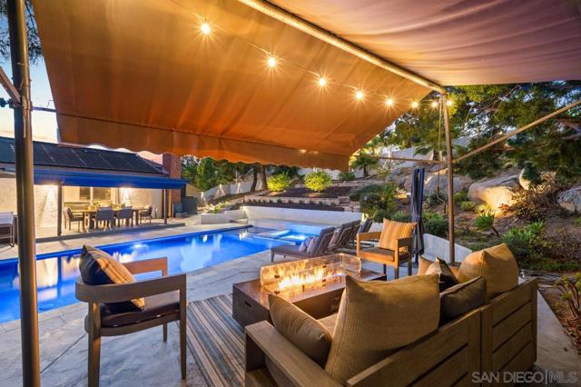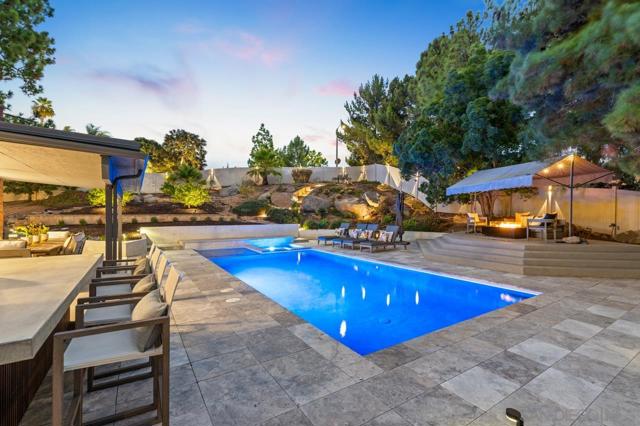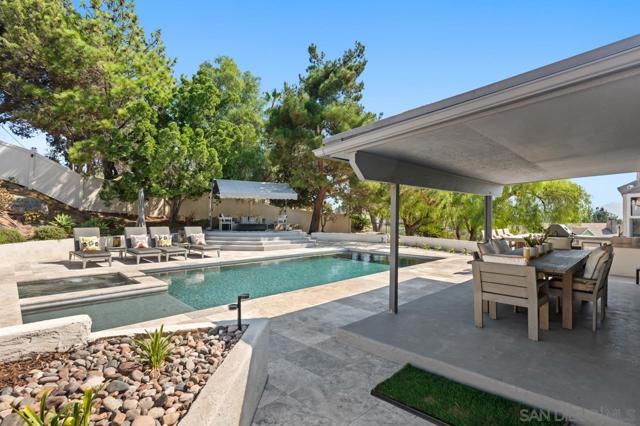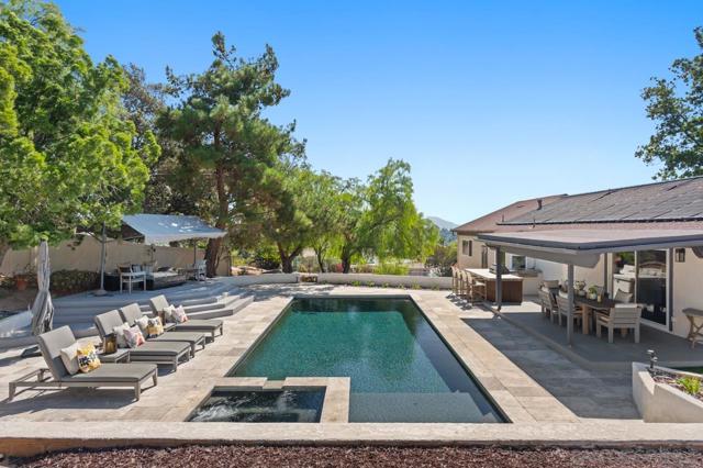WILL NOT LAST! Welcome to your private 1.14-acre hillside sanctuary, perched atop Mount Merritt with breathtaking panoramic mountain views and a brand-new pool, spa, and outdoor kitchen! This residence is a modern sanctuary, a designer masterpiece and entertainer’s dream, seamlessly balancing indoor-outdoor living with timeless mid-century flair throughout. Step inside to soaring vaulted wood-beamed ceilings, an open floor plan, and abundant natural light streaming through every window. The thoughtful layout lives like a single story, with most rooms on the main level and the private primary suite tucked away on its own level for ultimate privacy. The elegant dining area and cozy sitting lounge open to expansive view decks, the perfect place to watch the sunset. The kitchen flows effortlessly into the great room, where oversized picture windows frame the stunning mountain backdrop. A built-in bar and inviting fireplace set the tone for both lively entertaining and relaxed evenings at home. Discover 3 spacious bedrooms, a beautifully remodeled bathroom, and a generous laundry room with access to the 3-car garage. Step outside to your resort-style backyard oasis! Dive into the sparkling new pool and spa, fire up the outdoor kitchen with built-in BBQ, or gather around the firepit lounge for starlit evenings surrounded by nature and serenity. Every detail has been meticulously curated with no expense spared, from Restoration Hardware and Pottery Barn fixtures to custom mirrors, designer!