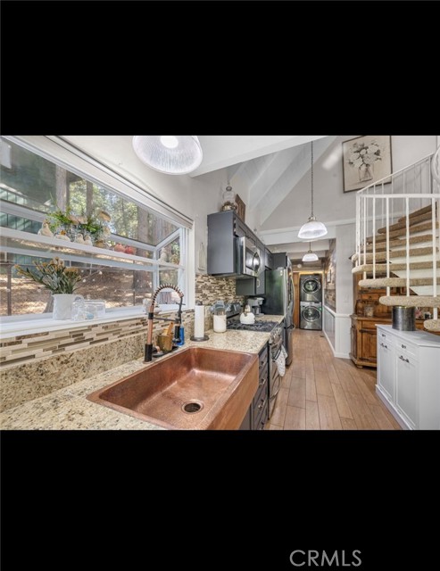 Charming & Modern Lake Arrowhead Retreat with RV Parking Nestled on an expansive 8,925 sq. ft. lot in the heart of Lake Arrowhead with LAKE RIGHTS, this beautifully updated home offers the perfect blend of serene mountain living and modern convenience, just minutes from vibrant city amenities. This move-in-ready gem is packed with recent upgrades, making it an ideal getaway or year-round residence. This home has a newly renovated kitchen, new interior and exterior custom paint, newly paved and expanded large driveway with new retaining wall, leveled area for additional parking or toys, new custom built stairwell leading up to the home, and newly expanded, inviting deck with trek materials. Brand new full house generator. Rare detached 2 car garage with endless opportunities to convert to ADU, game house or bonus area if desired. Perfect to store all your lake toys. The fully fenced backyard provides privacy and peace of mind for pets, kids and gatherings under the starry skies. Stainless appliances including wine fridge, upgraded wood-like tile floor, large pantry, laundry area and access to backyard. Primary bedroom with it's own suite bath to complete the main level. Upstairs you will find two spacious bedrooms with oversized closets and a secondary bathroom. Hidden updates that you won't see include PEX plumbing and new sewer line. Truly a charming tree-house feel to this immaculate cabin which is ideal for entertaining with large deck that has a 7000 BTU UV heater to keep you warm on cool mountain evenings and a level fenced back yard.