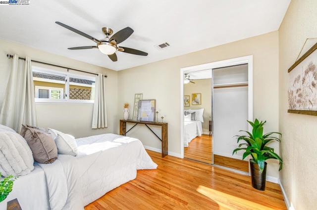 Welcome to this beautifully updated single story home in the heart of the Jensen Tract in Livermore! Step inside to find stunning hardwood floors and recessed lighting throughout, creating a warm and inviting feel. The modern kitchen features white cabinetry, sleek grey stone countertops with matching backsplash, stainless steel appliances, and a cozy dinette area, perfect for everyday meals. Spacious bedrooms offer comfort with ceiling fans and mirrored closet doors, while the bonus en-suite main bedroom adds a touch of luxury and privacy. Enjoy outdoor living in the expansive backyard with a gorgeous wooden patio deck, beautiful lawn, storage shed, and convenient side yard access. SYA includes perfect RV storage plus more!! Relax in your private spa-like backyard! A 2-car garage with small shop area completes this charming and move-in ready home! Perfect home for those seeking style, comfort, and Livermore living at its best!