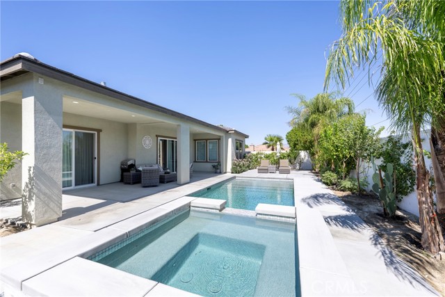 Take a look at this must-see, beautiful home nestled in the heart of Montage, Palm Desert. You are instantly greeted with pristine curb appeal with immaculate landscaping. Stepping into the courtyard, you will pass the private casita with it's own private entrance. This home boasts soaring ceilings and an open flooring concept that welcomes you from the moment you step inside. The spacious family room is located just off of the dreamy, gourmet kitchen with state of the art finishes and appliances. There is a huge island with seating for all your entertaining needs. All bedrooms are luxurious and spacious with custom window treatments and plenty of closet space. The bathrooms are sparkling with upgraded finishes and fixtures. The best part is when you decide to step outside to enjoy the yard that dreams are made of. Stylish patio, outdoor seating area and sparkling pool and spa. All of this and owned solar. Make this your new home today.