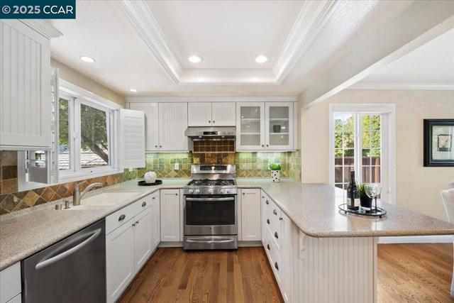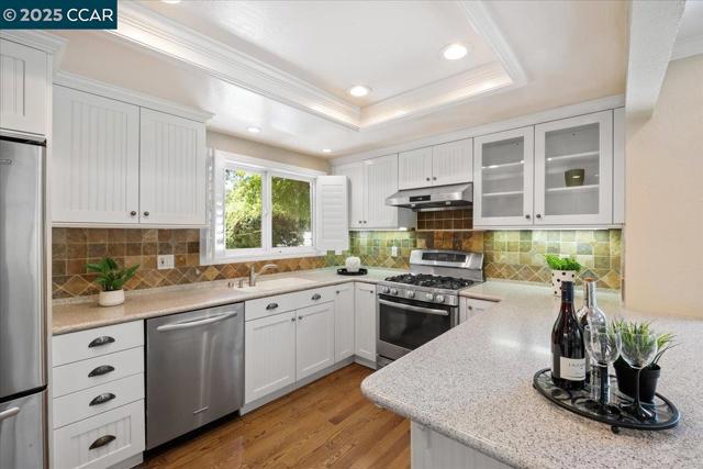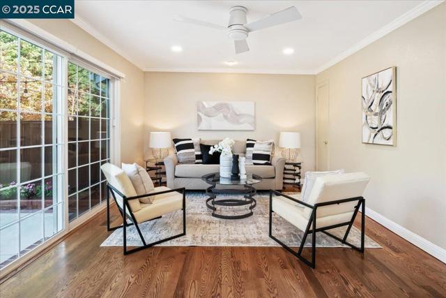 Coveted Sycamore neighborhood home on cul-de-sac w/in 2 miles of the charming Danville downtown. Updated 1986+/-SF on 2 levels. 4 bds. 2.5 bths. Formal living rm w/gas frpl, custom cabinetry. Open concept kitchen, dining & family rm. Inviting garden crtyrd entry w/seasonal blooms, mature shade tree, fountain, patio. Updated bckyrd design w/patio, lawn, multiple fruit trees, sprts ct. Hardwd & carpeted flrs. Crown molding. Hunter Douglas blinds/shutters. Ceiling fans. Smart switches. Skylights. Recessed lighting. Kitchen w/GE & KitchenAid appls, peninsula island/brkfast bar, beadboard detailed cabinets, built-in work station. Dining area w/new flush-mounted fixture adjacent to family rm. Slider to backyard. Primary suite w/west-facing views, sliding mirrored closet drs, shutters. 3 bdrms share large bthrm w/skylight, single-sink vanity, storage cabinet, tub/shwr combo. 2-car garage w/added recessed lights, ladder to overhead storage racks. Whole house fan. Central AC (2023), garden shed, timed drip irrigation, laundry niche. Updated ductwork, furnace, sealed crawl space & fencing. Near 10 acres of parks, 3 clubhouses, 3 pools, volleyball/pickleball cts, playgrnds, walking trails. Near Iron Horse Trail, weekly farmers market, top-rated K-8 SRVUSD schls w/in a mile. SRVHS w/in 2 mi.