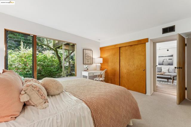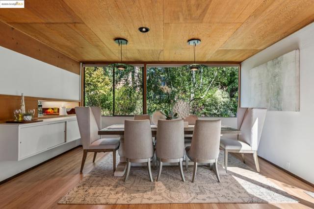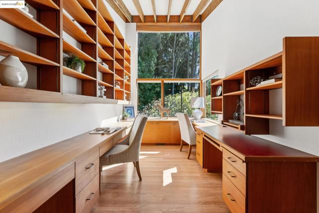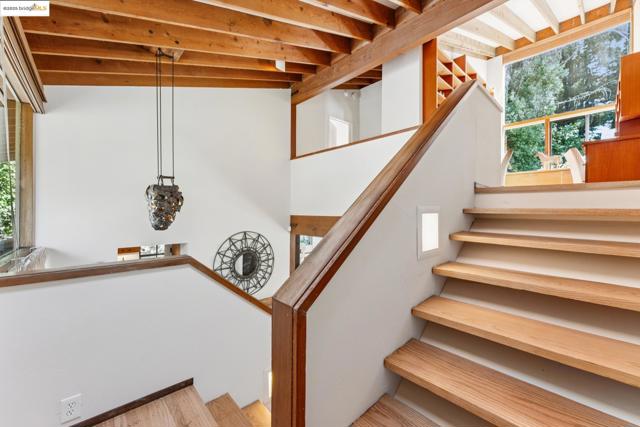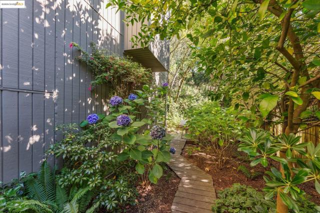 Nestled at the end of a cul-de-sac in the Berkeley Hills near Tilden Park, this home offers a peaceful retreat with stunning gardens and unparalleled privacy and serenity. Custom built in 1967 by the current owners, the warm and inviting atmosphere features a high vaulted entryway and an open-concept living area with redwood paneled ceilings and custom details. Large windows throughout the home frame stunning views of the gardens and adjacent open space. The thoughtful design creates a perfect balance of shared and private spaces, with 4 bedrooms, 3.5 baths, a comfortable den, and a large office with built-in desks and bookcases. An expansive outdoor deck connects the main living space with beautifully landscaped gardens, mature fruit trees, stone walkways, seating areas, and a seasonal creek. The spacious 4th bedroom has direct access to the garden and side deck. This house is lovingly maintained, with freshly refinished hardwood floors throughout and a new class A fire rated roof with transferable warranty. This is the perfect sanctuary for those seeking quiet, access to nature, and proximity to UC Berkeley and the vibrant culture of the Bay Area. A must-see! Bonus: PG&E is undergrounding wires for additional fire protection. Street repaving slated for early 2026 per PG&E.