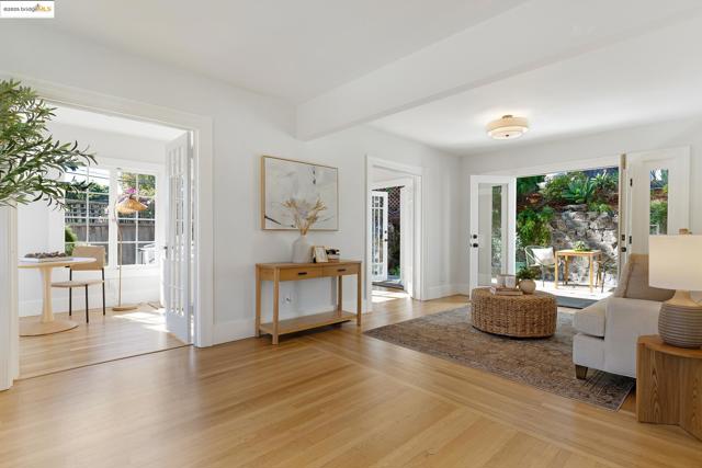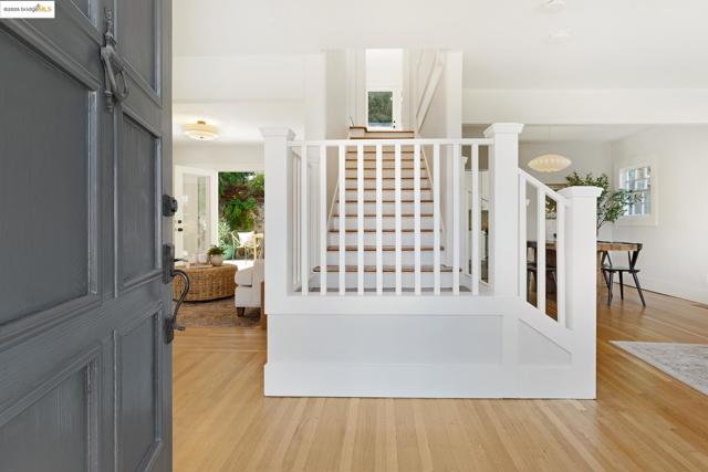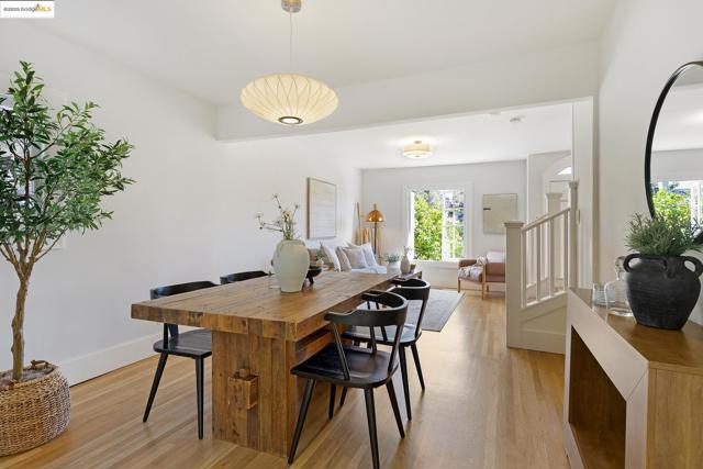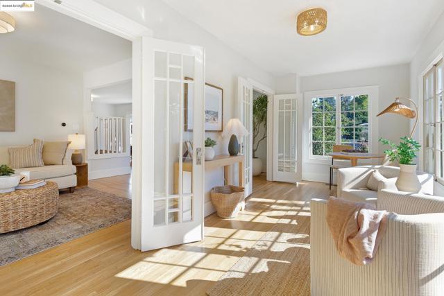 Welcome to 495 Jean Street – a Dutch Colonial where original details meet modern upgrades. Built in 1917 and extensively remodeled in 2013 with a new roof, foundation, electrical, heating, and plumbing systems. The main level offers a large living room that opens to a sunroom and private backyard. Imagine curling up with a book while enjoying peaceful surroundings in the sunroom, or gathering with friends and family in the generous downstairs spaces. Two sets of French doors connect the kitchen, sunroom, and yard, creating a seamless indoor/outdoor flow for entertaining. Upstairs features three bedrooms plus a versatile office. The rear bedroom offers direct access to the upper backyard retreat with a Japanese soaking tub, while the primary bedroom—with an adjoining sunroom—showcases views of the Oakland Hills. A freestanding laundry shed provides additional flexible space. The thoughtfully designed backyard takes full advantage of the lot, with private patios, lounging areas, a pond, and lush gardens. The location is unmatched—walk to Morcom Rose Garden, the Saturday Grand Lake Farmers Market, Lake Merritt, the Grand Lake Theater, and popular cafés and shops. Easy freeway access makes commuting to San Francisco a breeze.