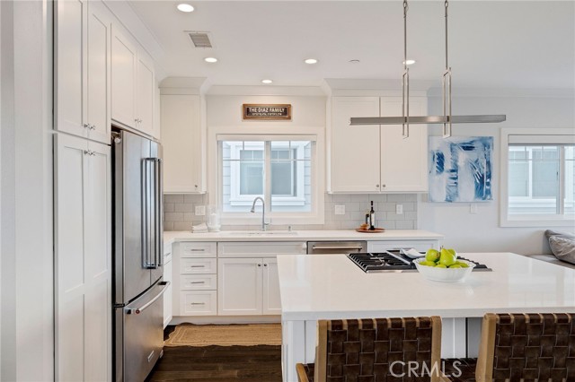 Built in 2018, this gorgeous open concept townhome is located in a small gated community of only 6 units in North Torrance . Walk into the first level through your own gated front yard and private entrance with direct access to a huge 3 car garage with custom storage and a half bath. The third car space in the garage can easily be converted to a home office/ gym. The second floor great room features large windows which allow natural light to pour into the space. The kitchen has built-in Kitchen Aid stainless steel appliances, a kitchen island with a breakfast bar, and quartz stone counter tops. The great room’s stacking glass doors open to a large outdoor covered deck which extends the living area to the outside and is perfect for taking advantage of sunny Southern California's indoor outdoor lifestyle. The spacious great room also has a dining area, fireplace and half bath for guests. The third floor offers a large master with 5 piece en-suite. Two additional bedrooms with vaulted ceilings, a full bathroom and laundry round out the second floor. Dark walnut hardwood floors, air conditioning and tankless water heater, double paned Milgard windows with custom cellular blinds, ceiling fans are included amenities. Located in North Torrance, with easy access to the beach, great restaurants, close to shopping, freeways, and distinguished Arlington Elementary School.
